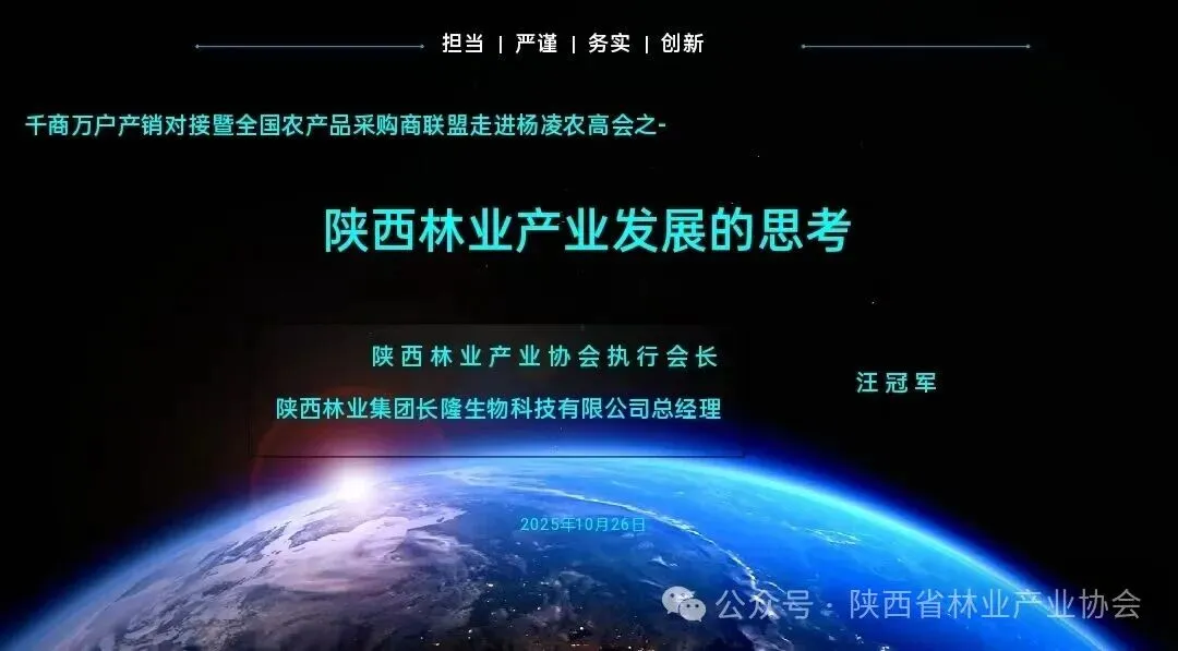 今天,我们齐聚杨凌,借着农高会的契机,共同探讨陕西林业产业发展的现状与未来。陕西,这片承载着厚重历史与灿烂文化的土地,北接毛乌素沙地,中拥关中平原,南依秦巴山区,多样的自然地理格局赋予了其发展林业产业独特的禀赋与巨大的潜力。推动陕西林业产业实现更高质量、更可持续的发展,不仅是践行“绿水青山就是金山银山”理念的必然要求,也是促进区域协调发展、助力乡村振兴、实现生态富民的重要途径。在此,我愿分享几点关于陕西林业产业发展的思考。