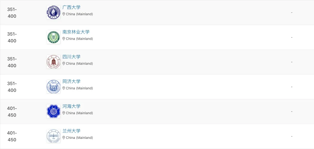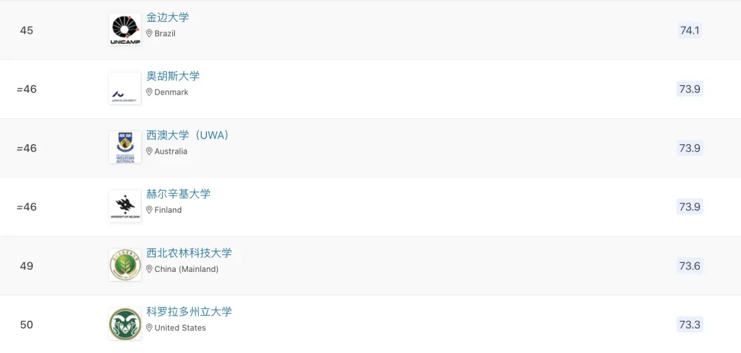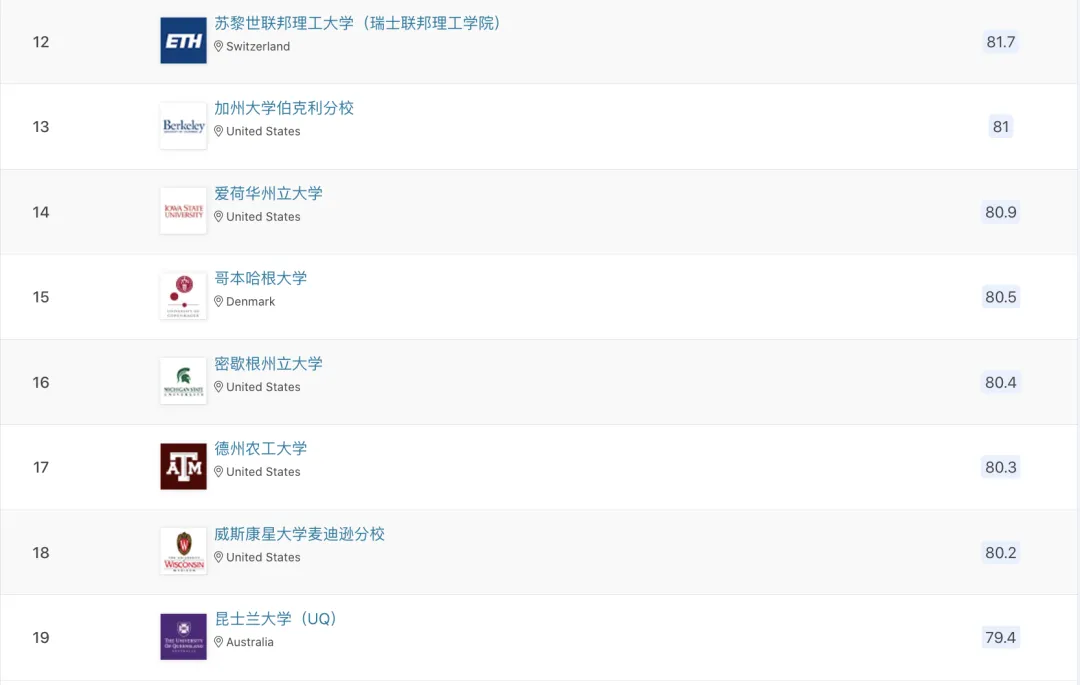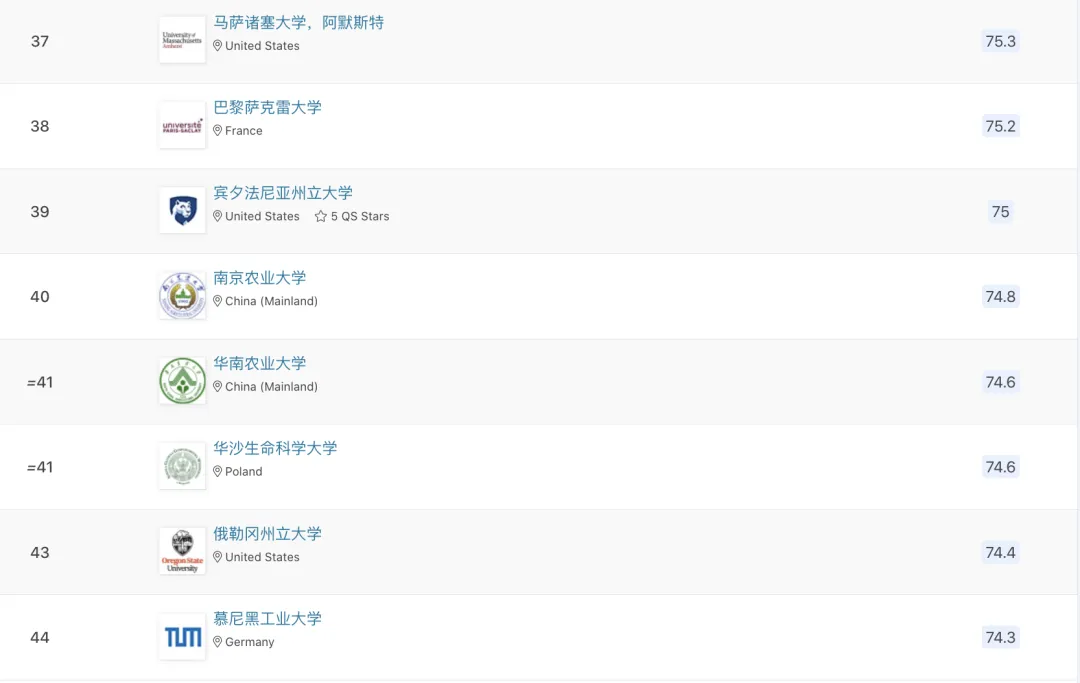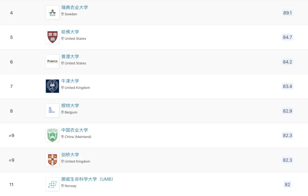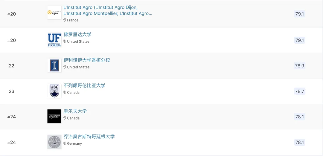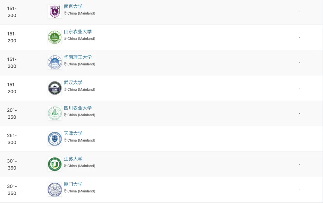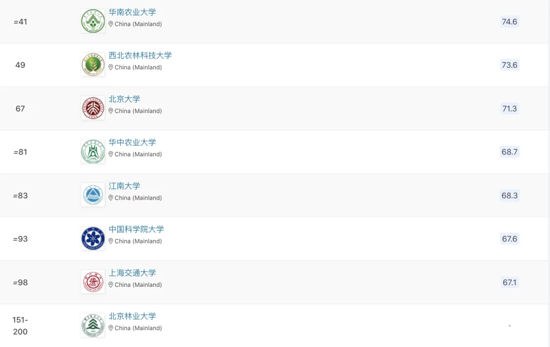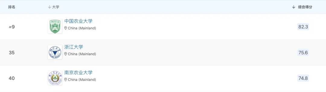 最新!QS农业&林业学科排名公布,中国农大全球前十