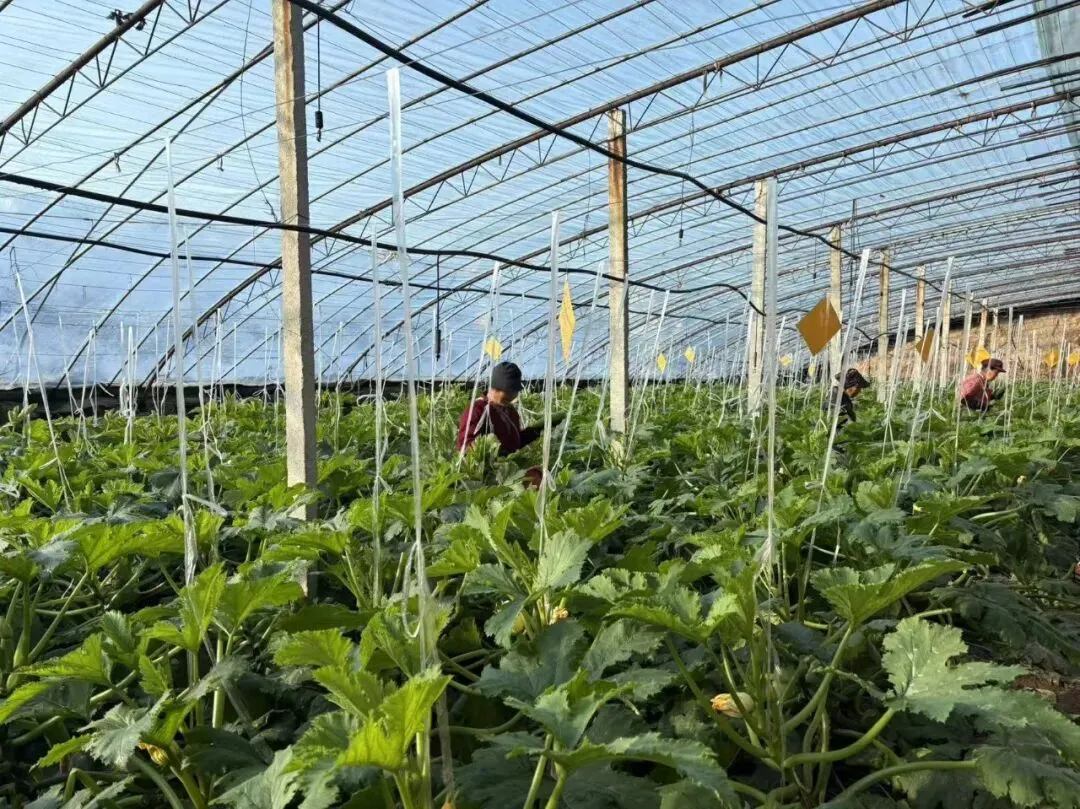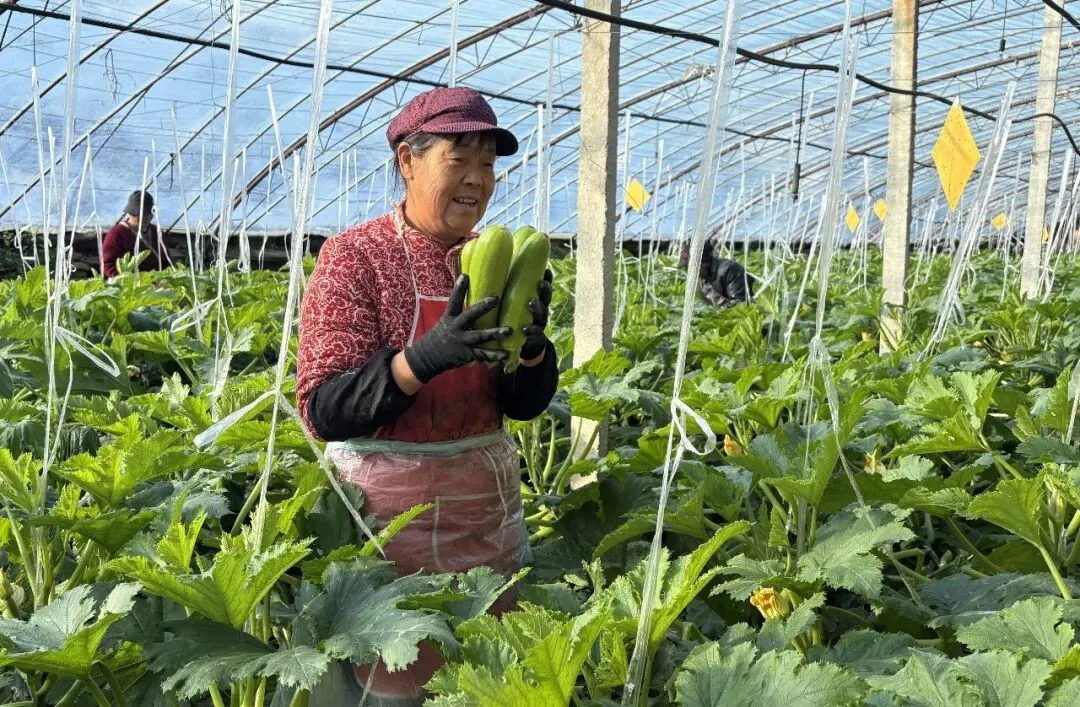 该种植基地采用“基地+农户”的经营模式,带动了周边数十户村民就业增收,让村民们在寒冬腊月也能实现“家门口就业、四季有收入”。正在西葫芦大棚采收的王引贤手脚麻利地摘下成熟的西葫芦,脸上满是笑意。