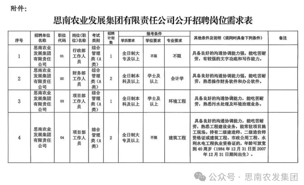 思南农业发展集团有限责任公司根据企业发展和实际工作需要,经研究决定面向社会公开招聘6名工作人员(享受国有企业正式职工福利待遇),现将有关事项公告如下: