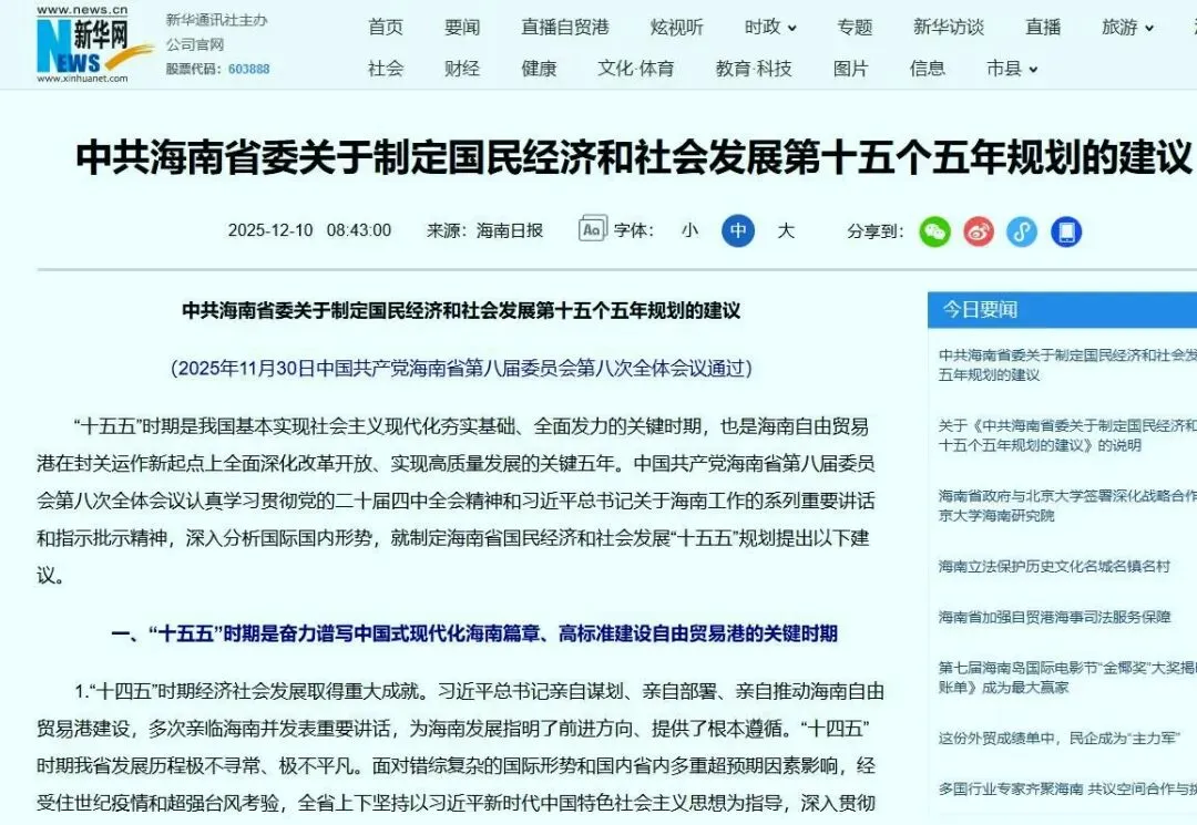 6、海南省委“十五五”规划建议的玩海产业即时响应