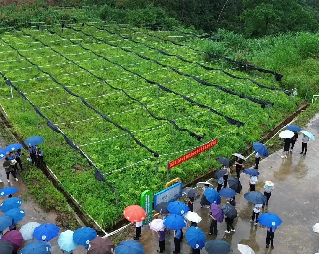 基地位于藤县金鸡镇旺国村,占地面积约1500㎡。其运用苗圃林下原生态条件,仿造金毛狗蕨的自然生长环境进行栽培,现已迁植被盗挖的金毛狗蕨根茎1万余株。基地采取“恢复性司法+专业化监督+社会化治理”的生态修复模式,并由林业专业人员指导苗圃工作人员进行紧急救护和后期管护,确保国家重点保护植物得到良好保育,生物多样性得到有效保护。