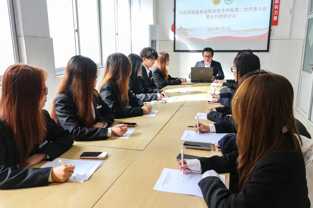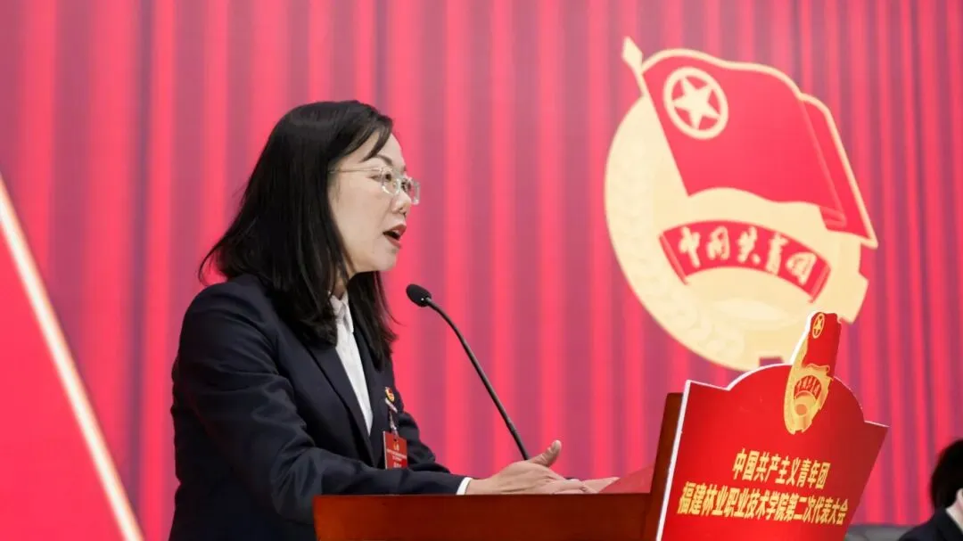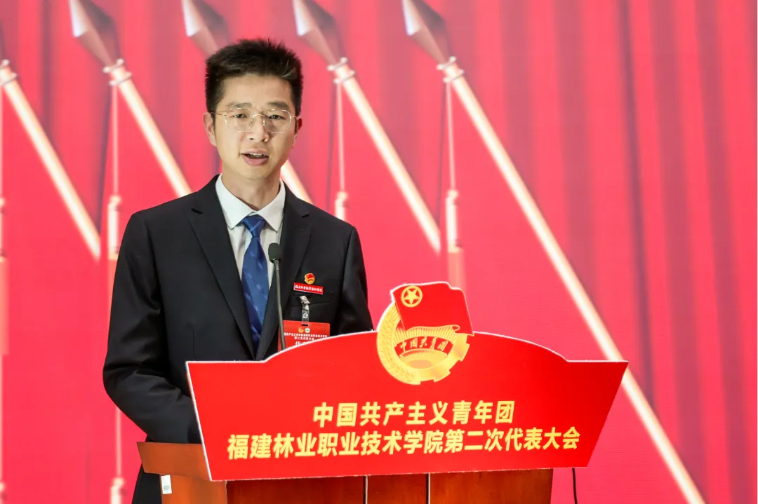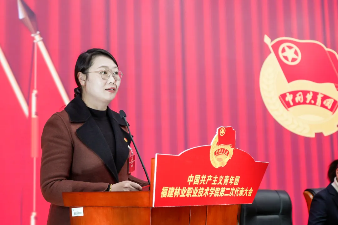 院团委书记吴旻代表共青团福建林业职业技术学院第一届委员会向大会作了题为《坚定不移跟党走 强国有我新征程 深入学习贯彻党的二十届四中全会精神 为加快建设特色鲜明、优势突出,位居全国林业类高职院校前列的现代强校贡献青春力量》的工作报告。报告系统回顾和总结了第一次团代会以来学院共青团的工作与成绩,深刻分析了新时代面临的机遇与挑战,明确提出了未来五年工作的指导思想、主要目标和重点任务。
