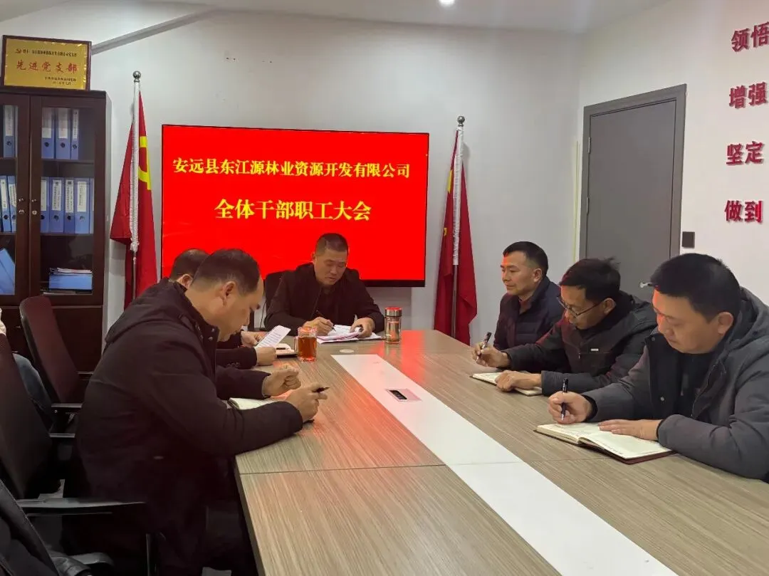 会上,党支部书记叶红斌传达学习县林业局2025年12月31日召开的职工大会精神、《关于做好2026年元旦春节期间正风肃纪工作的通知》,学习了《从严加强干部"八小时外"活动监督管理的若干措施》等文件精神,以及中共安远县委十五届九次全体(扩大)会议精神。 经理余伟忠从国储林项目建设、智慧林业推进、场外造林拓展、林业碳汇开发、林业生产服务队管理等方面回顾总结了2025年工作,对2026年工作进行了安排部署。