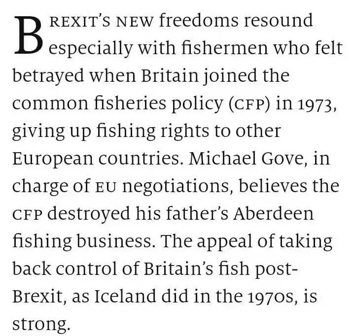 人们对英国脱欧后收回对渔业资源的控制权(正如冰岛在20世纪70年代做的那样)有很强的呼声。