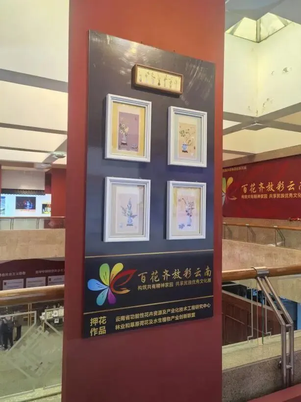 2025年12月31日,西南林业大学园林园艺学院师生创作的60幅押花画作品,在云南省民族博物馆开展题为“百花齐放彩云南”的专题展览。此次展览活动由云南省民族宗教事务委员会主办,作品由园林园艺学院明珠、李宗艳、王明蓉等老师及所指导的4名本科生创作完成。