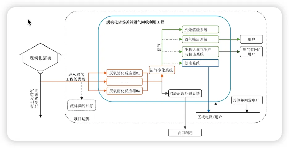 值得注意的是,该方法学仅针对规模化猪场粪污沼气回收利用工程部分,即规模猪场运营及沼渣农田回收利用不在该项目边界内。