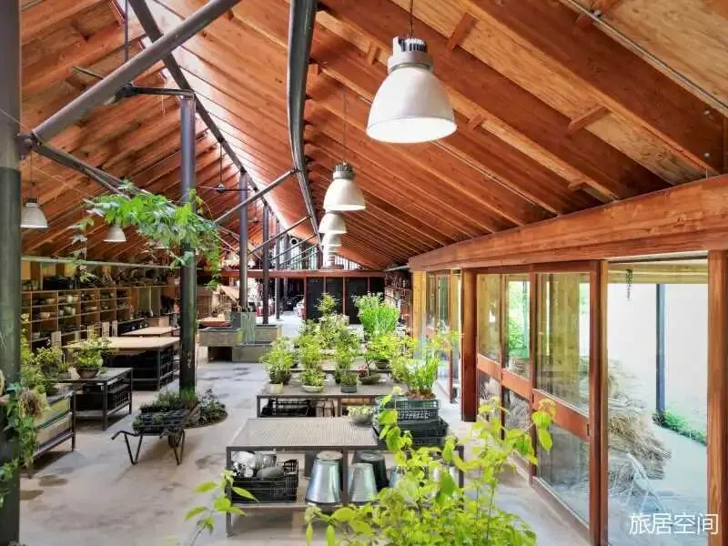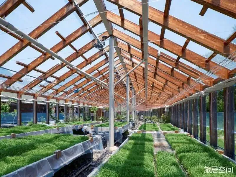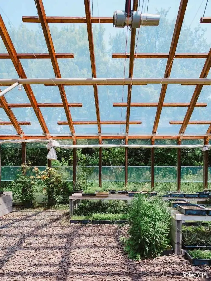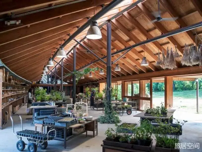 使用的主要材料是草皮屋顶、木板墙和裸露铁材,这些材料会随着周围的自然一起缓慢变化。毗邻的培育建筑是野花的育苗棚,它与主建筑并列,两者在空间、色彩和光线质感上形成对比,同时又与主建筑的形式保持协调,构成一对特色鲜明的建筑。