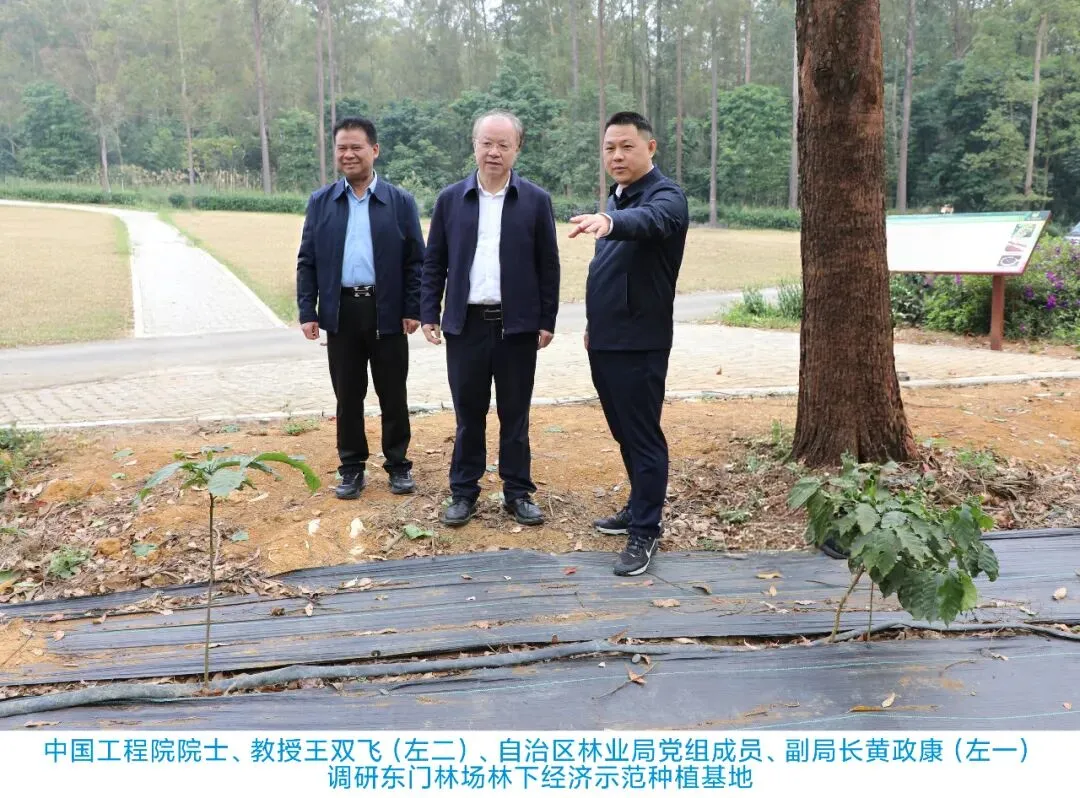 2025年12月30日,自治区林业局党组成员、副局长、一级巡视员、广西林业实验室理事会常务副理事长黄政康,中国工程院院士王双飞调研指导广西林业实验室东门科研基地建设工作,实地考察东门林场林下经济、大花序桉种源试验林、林业科技园区、桉树高产高效栽培示范林。东门林场党委书记、场长叶家义陪同调研。黄政康要求,要压实主体责任,健全统筹协调机制,将基地建设运营纳入重点工作,细化分工、明确节点与责任,严守各环节质量关,推动建设规范化、管理精细化。要释放叠加优势,整合盘活林场资源、平台、人才等核心要素,聚焦桉树育种前沿,紧扣林业产业高质量发展需求,瞄准良种培育、丰产栽培等技术痛点,明确研发建设核心方向。要深化协同创新,完善产学研用机制,加强与科研院校、企业合作,搭建研发与成果转化平台,突破技术瓶颈,助力打造全区林业科创策源地与成果转化示范高地。王双飞指出,广西森林资源丰富,是林业大区与木材主产区,东门林场作为我国重要桉树良种基地,在桉树科研与产业化领域成果显著。该科研基地的设立,是对林场科研积淀与产业优势的认可,契合林业科技赋能产业升级需求。要聚焦桉树遗传育种、高效培育等产业关键领域,攻克“卡脖子”技术,打造科技创新高地。要秉持开放共享理念,强化多学科交叉融合,深化产学研用合作,汇聚人才与智慧,构建创新生态。要立足广西造纸产业快速发展的需求,推动创新链、产业链、人才链深度融合,以科技创新成果转化赋能林业产业升级。叶家义表示,东门林场长期深耕桉树育种研究,在桉树遗传改良科研攻关与推广应用中成果丰硕,建成“国家桉树良种基地”“桉树国家林木种质资源库”两大国家级桉树科研平台。站在新起点,林场将深入贯彻落实自治区林业局党组决策部署,携手合作单位,传承“桉出东门、绿泽八方”精神,履行共建责任,高标准推进基地建设与运行保障。深化产学研用融合,加速成果转化推广,全力打造林业科创高地,为广西林业实验室建设及全区林业现代化建设贡献更强“东门力量”。自治区林业局科技处处长、实验室理事会秘书长伍贤旭,林场种苗处副处长伍建波,广西大学林学院院长符韵林,广西林业实验室执行主任、广西林科院院长李开祥,广西林科院教授级高级工程师杨章旗,广西林科院副院长李昌荣,东门林场副场长张照远陪同调研。据悉,广西林业实验室,这是全国林业领域唯一的省级创新平台。实验室坚持“政府主导、院所牵头、企业共建、开放协同”的运行机制,由广西林科院联合13家区直国有林场以及涉林高校、龙头企业共同建设,目前已初步构建起覆盖基础研究、技术攻关和成果转化全链条的创新体系。文字 | 林叶邦、赵英伟