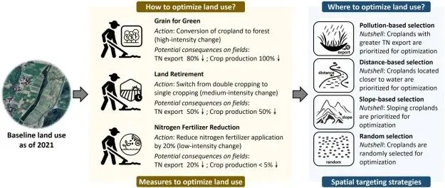研究还明确了两项提升 PES 方案成本效益与社会经济可行性的策略。其一,采用空间靶向策略,在流域内识别少量关键生态系统服务供给方,以最小的土地利用与生计影响实现显著环境效益。针对三种备选土地管理措施,设计四种空间靶向策略,旨在以最低作物生产成本优化水质。对于新安江流域及全球同类流域,基于污染强度对耕地进行优先级排序至关重要;缺乏详细污染数据时,水源附近耕地可作为高成本效益的管控重点。大幅改善水质建议采用造林等强干预措施,小幅改善则选择土地休耕、化肥精细化管理等温和措施,成本效益更高。