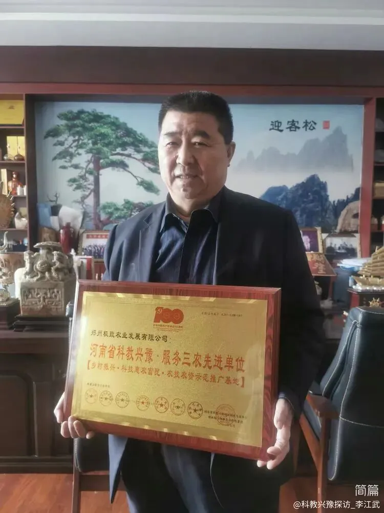 郑州极致农业发展有限公司董事长刘水镇领取:河南省科教兴豫(乡村振兴科技富农惠民)先进单位奖牌及证书!