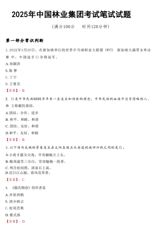 中国林业集团笔试通知已出!不知道考什么的小伙伴抓紧时间背题啦!本次考试总共分为行测+时政+企业文化+论述题,题量大时间紧,一定要提前熟悉考试题型哦!