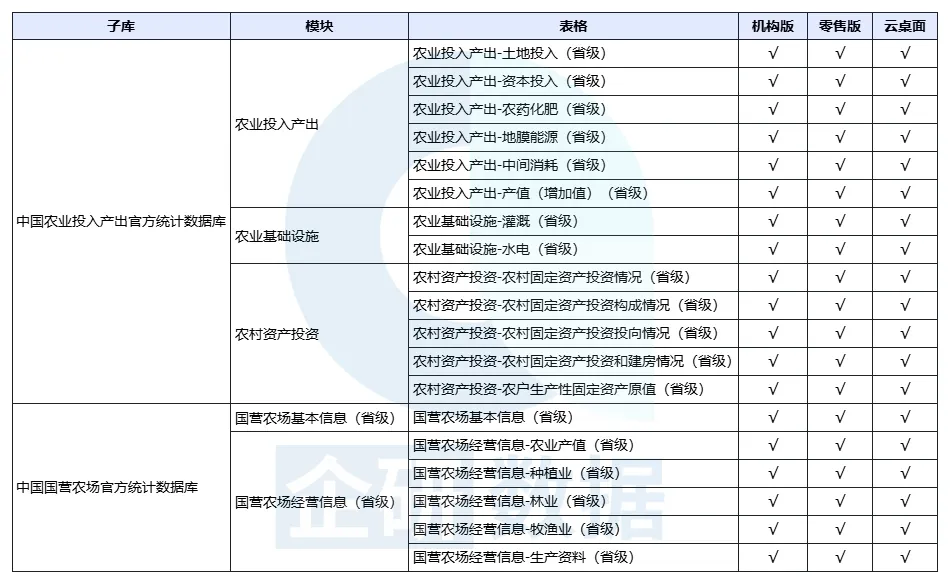 农业生产主题数据已在企研·社科大数据平台(机构版)(r.qiyandata.com)、企研·社科大数据平台(零售版)(m.qiyandata.com)、企研·社科大数据平台(云桌面)(cloud.qiyandata.com)正式上线,欢迎大家下载使用!