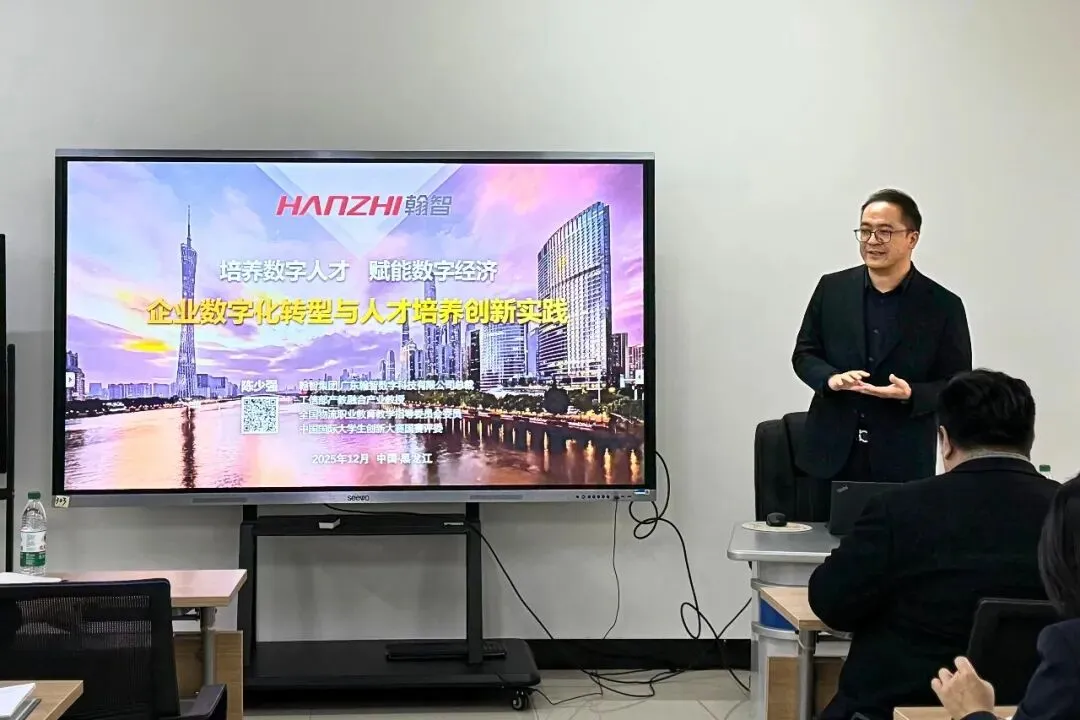 为科学谋划“十五五”时期发展路径,深化产教融合、校企合作,精准对接产业升级与人才需求变化,近日,黑龙江农业工程职业学院经济管理学院主办“十五五”发展规划专题研讨会,黑龙江农业工程职业学院经济管理学院副院长李由,学院党总支副书记谭雨来、院长尹衍波、副院长尹莹、各专业群带头人以及骨干教师参与会议。翰智集团|广东翰智数字科技有限公司(以下简称为“翰智数科”)总裁陈少强受邀出席,并发表主题报告,旨在分享产业动态和技术前瞻,为学校人培和专业建设注入了多元化思想与经验。