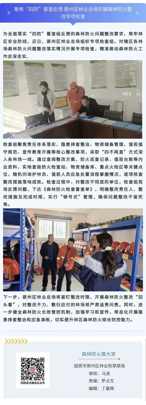 >聚焦“四防”督查反馈 原州区林业总场开展森林防火整改专项检查