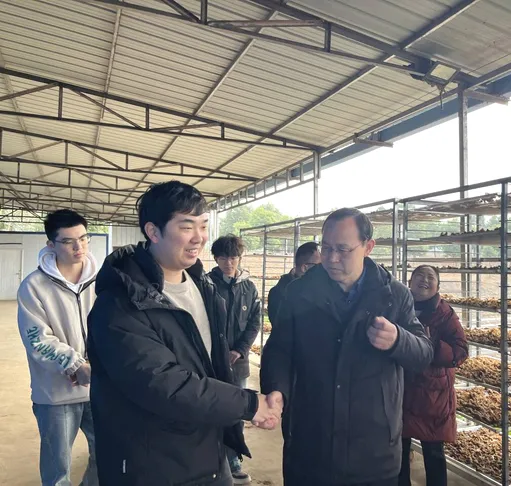 捐赠仪式后胡总带领我院党委书记李立威,詹红菊教授,学工办主任刘本权,24级辅导员何英杰以及三名受助学子共同参观种植基地,介绍公司经营状态和企业文化,现场氛围活跃。
