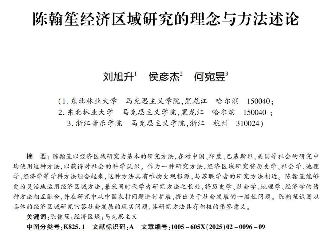 东北林业大学马院博士生发表C刊:《陈翰笙经济区域研究的理念与方法述论》