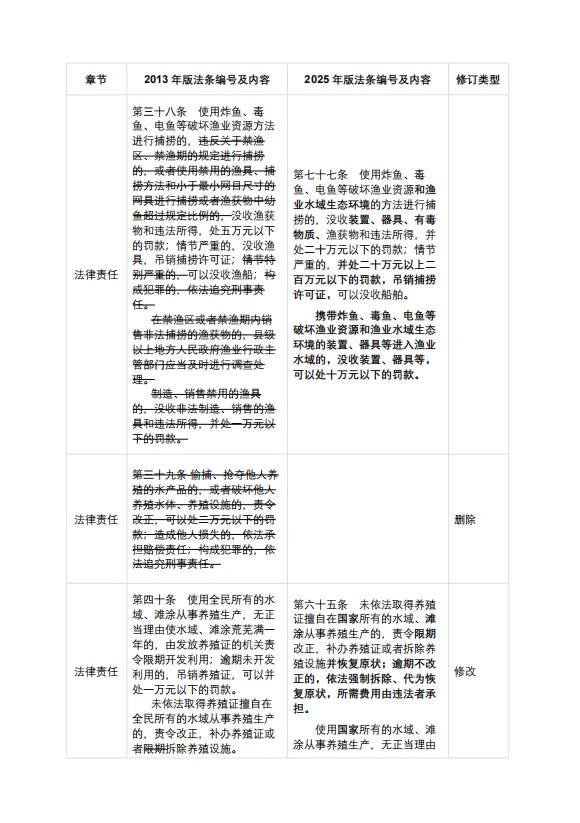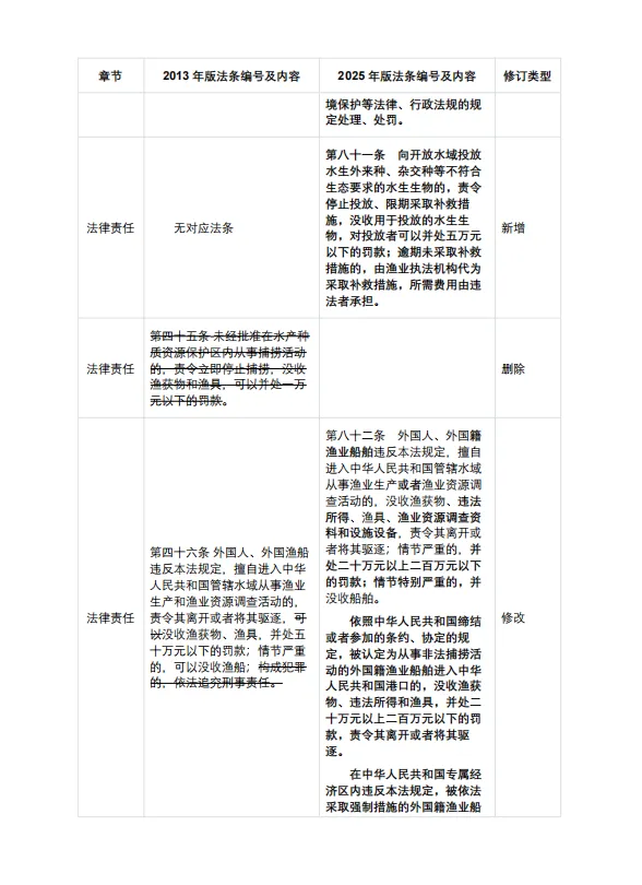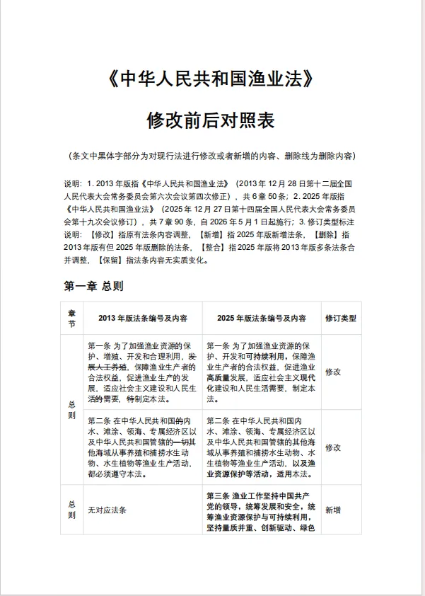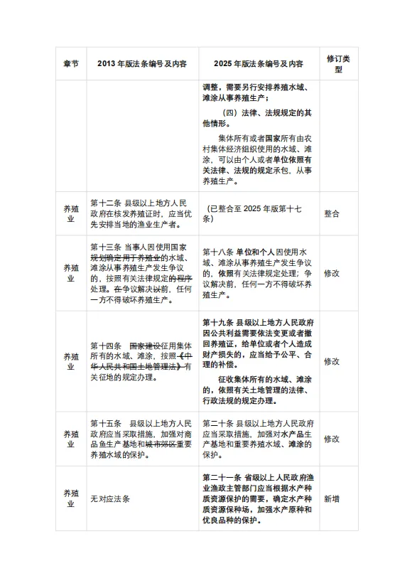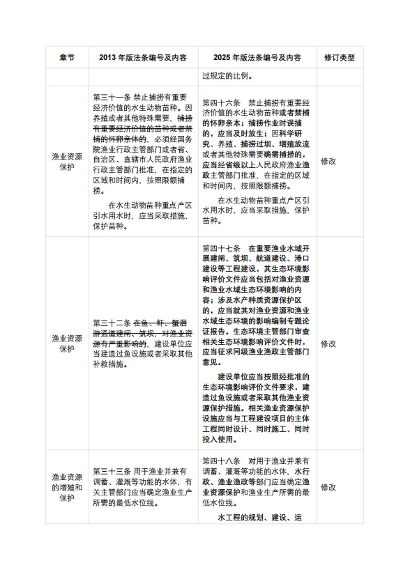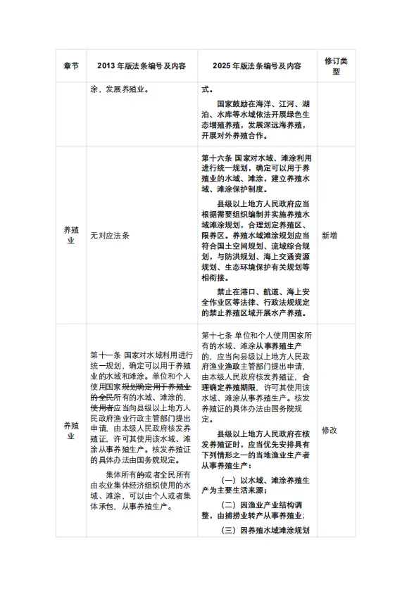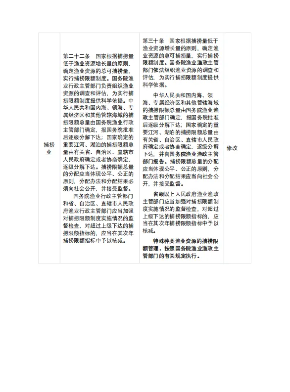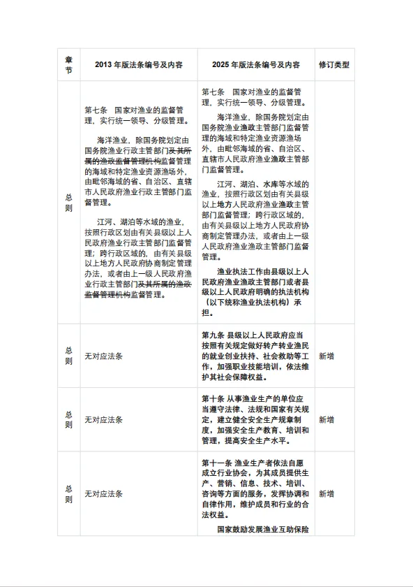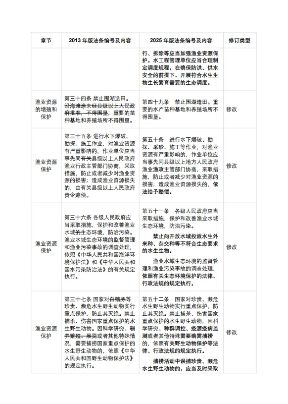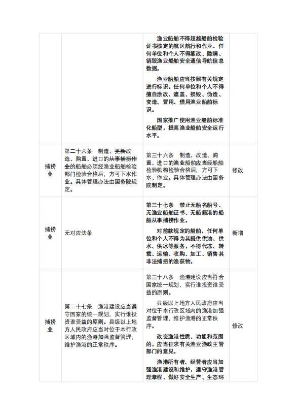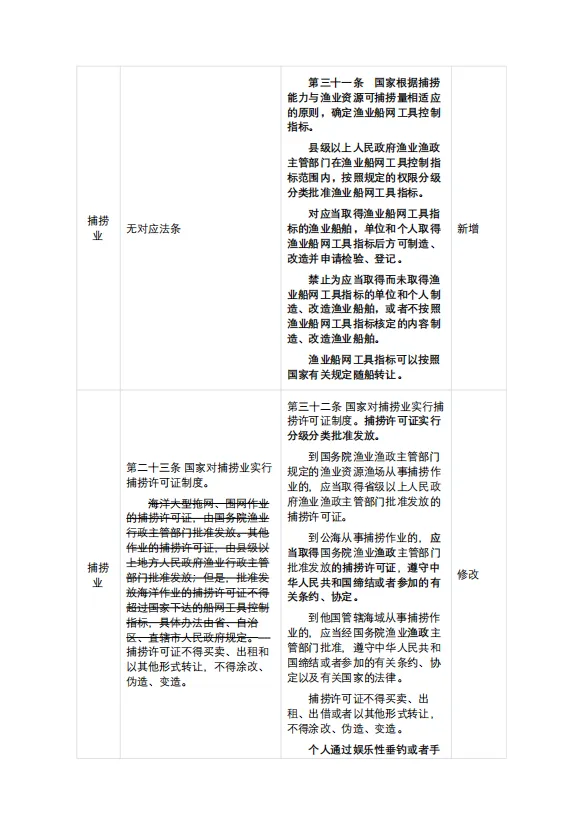 渔业渔政 | 《中华人民共和国渔业法》修改前后对照表