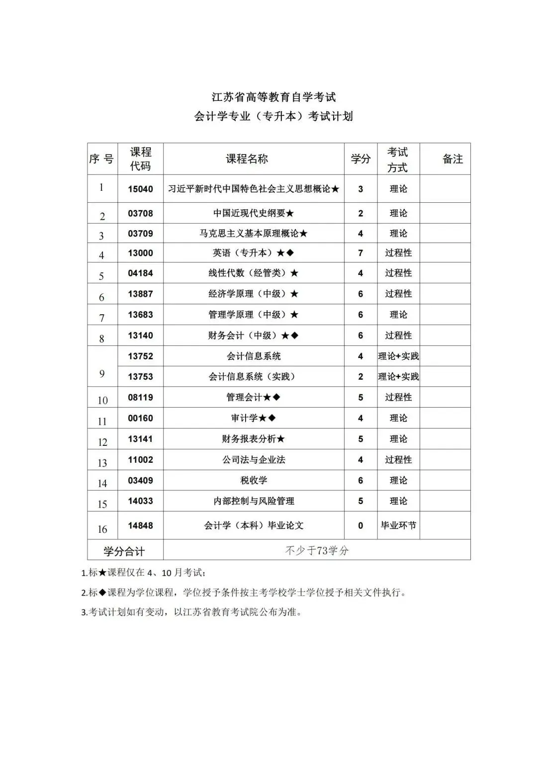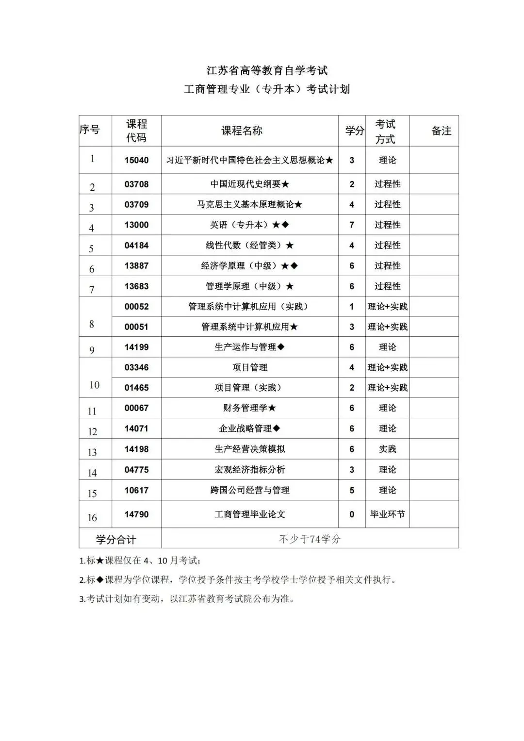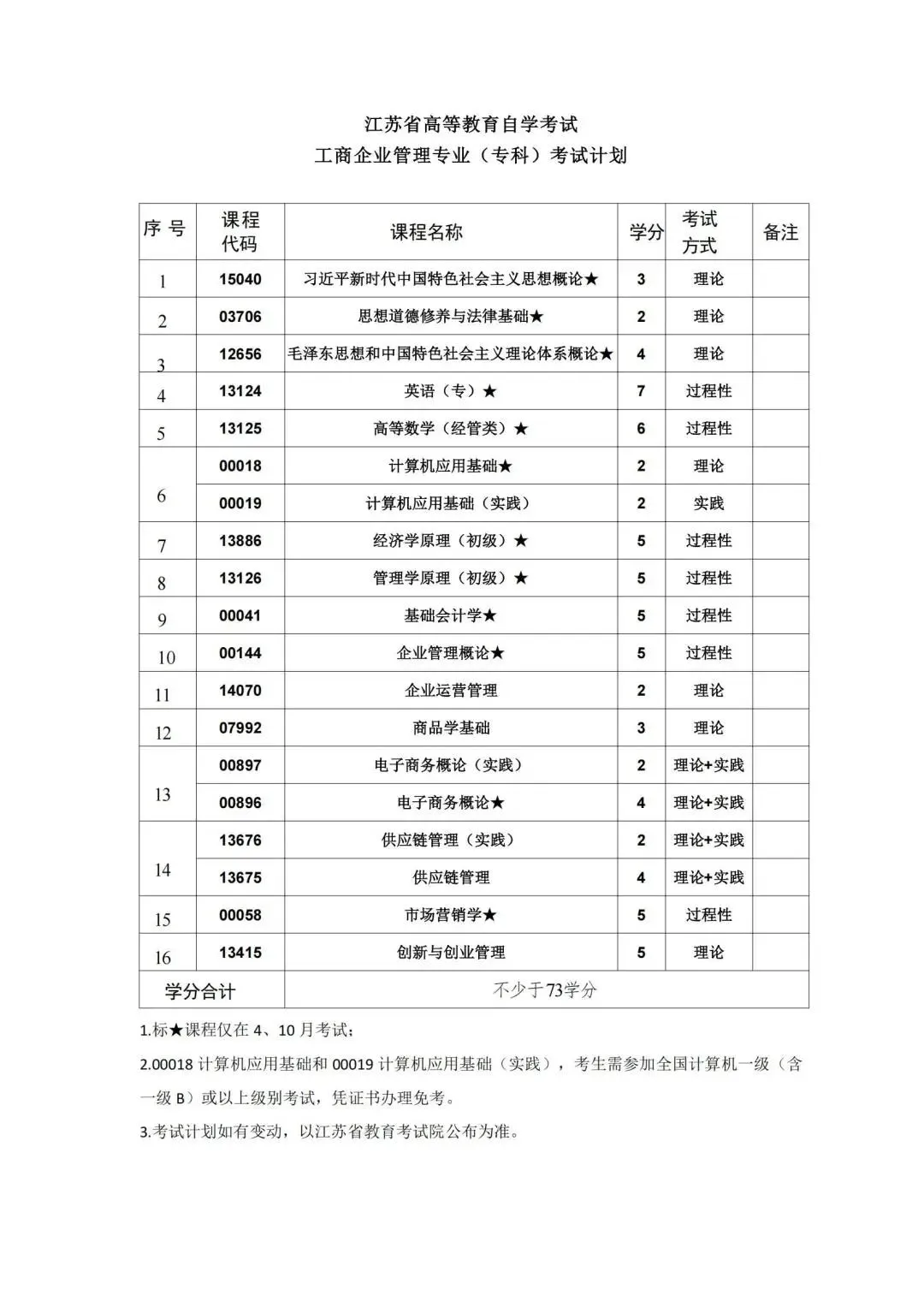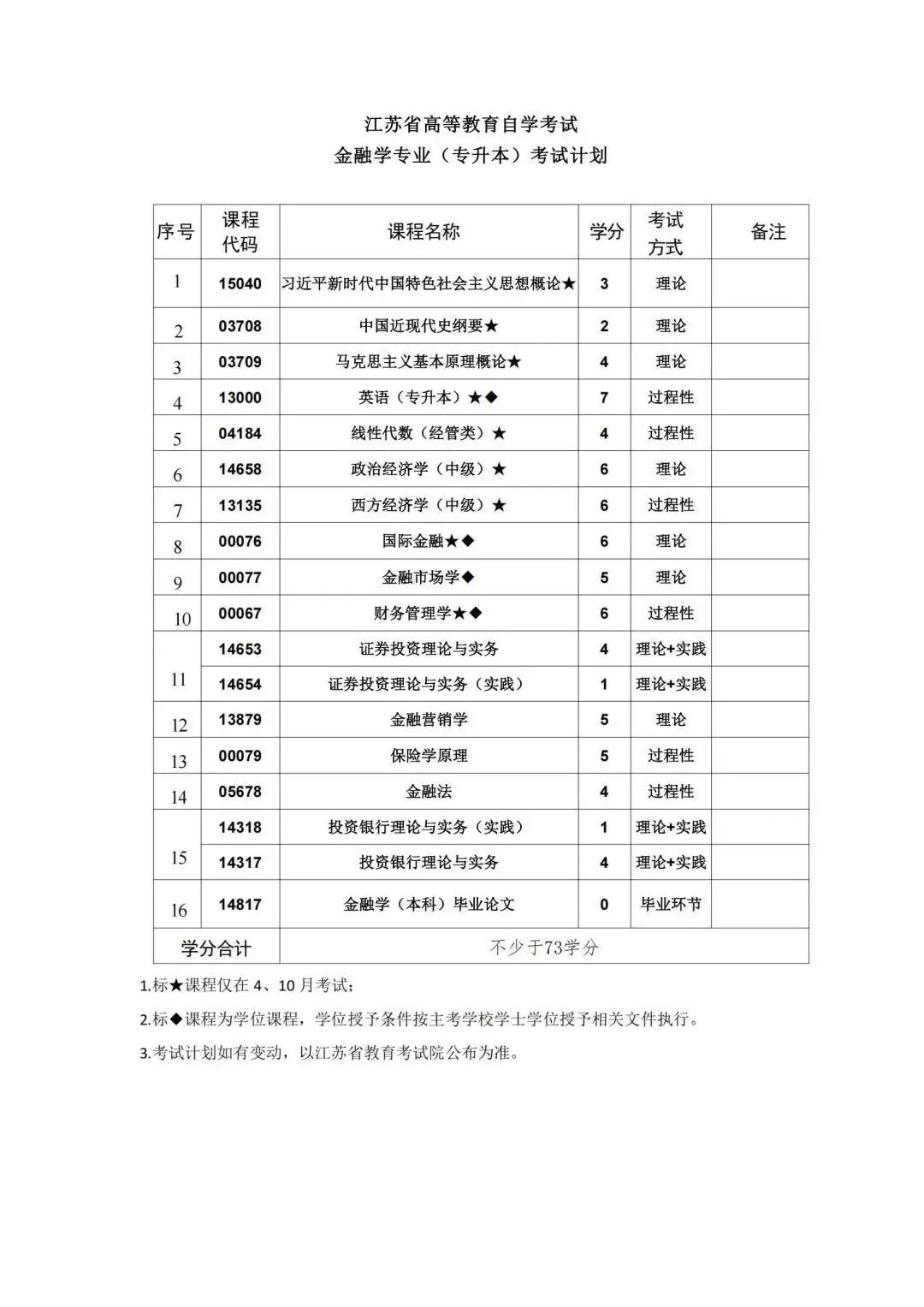 按照教学计划,考试课程门数一般不少于16门。考试由江苏省教育考试院统一组织实施,每年考试时间为1月、4月、7月和10月,国考课程考试时间仅在每年的4月和10月.