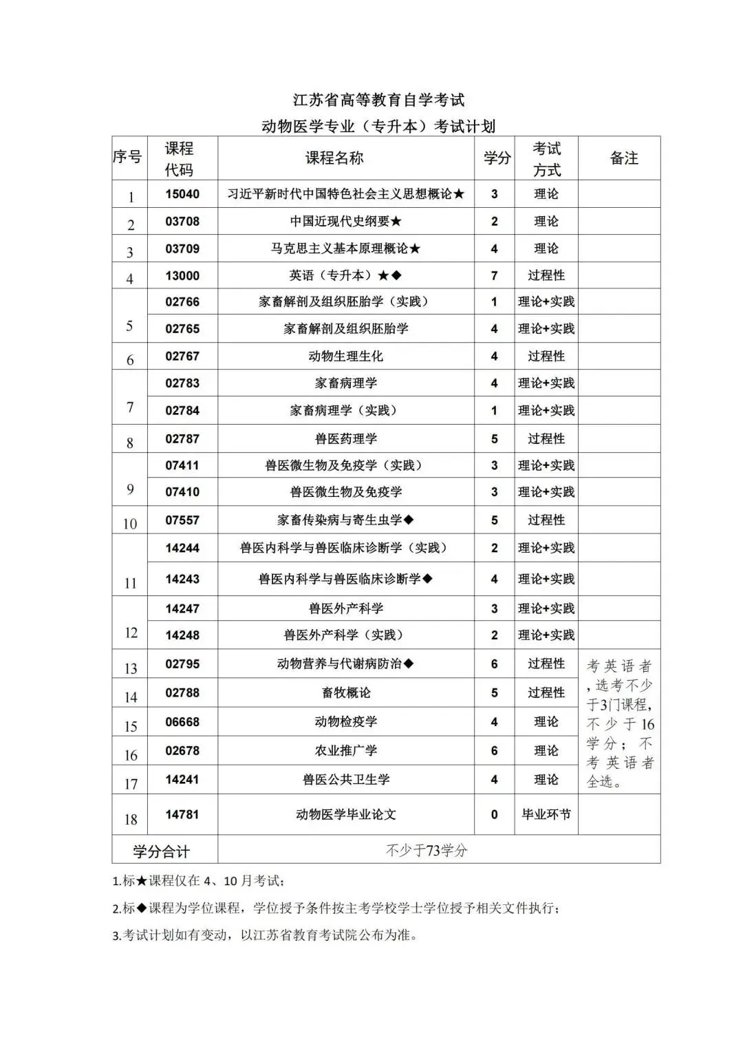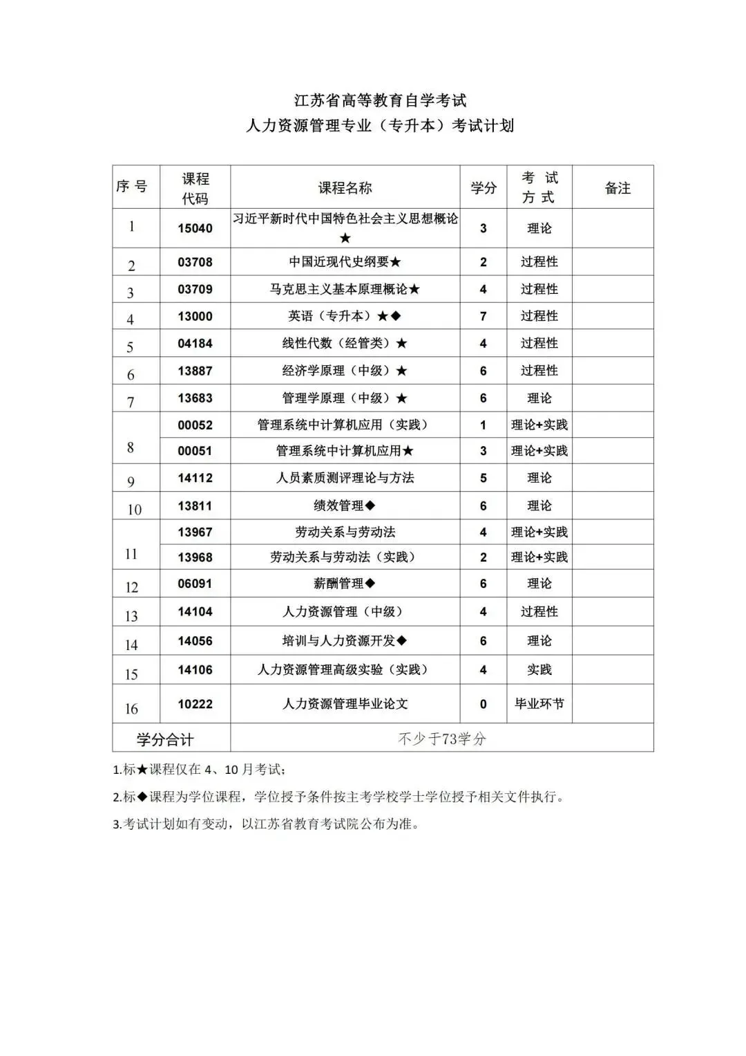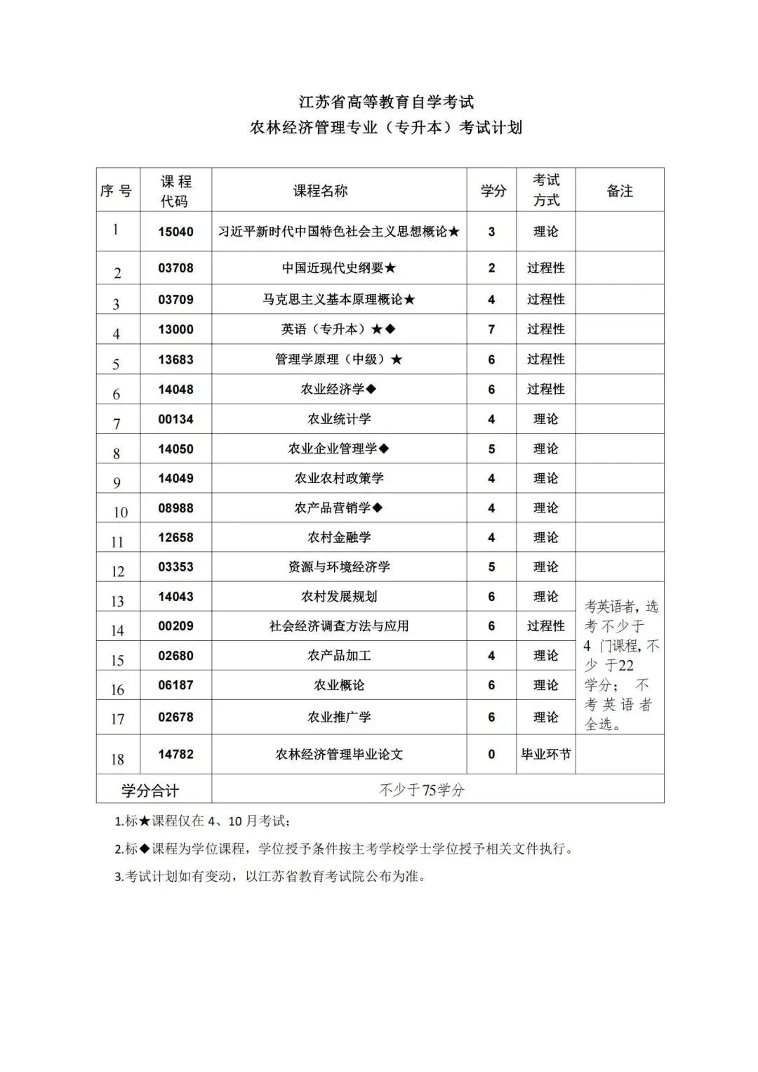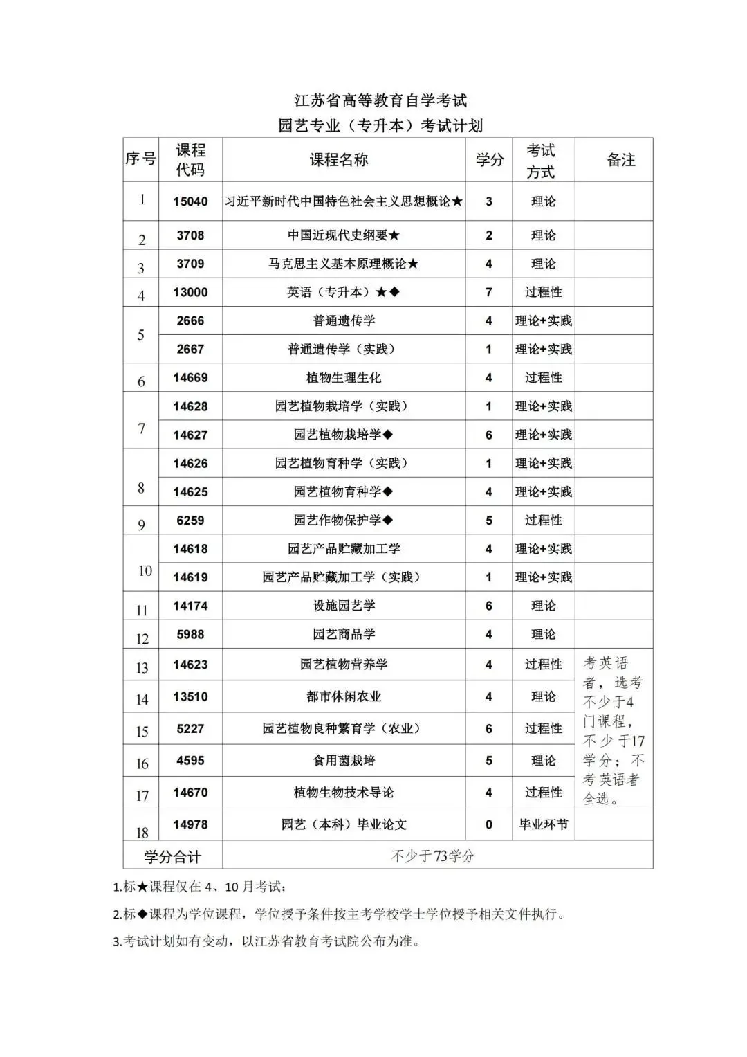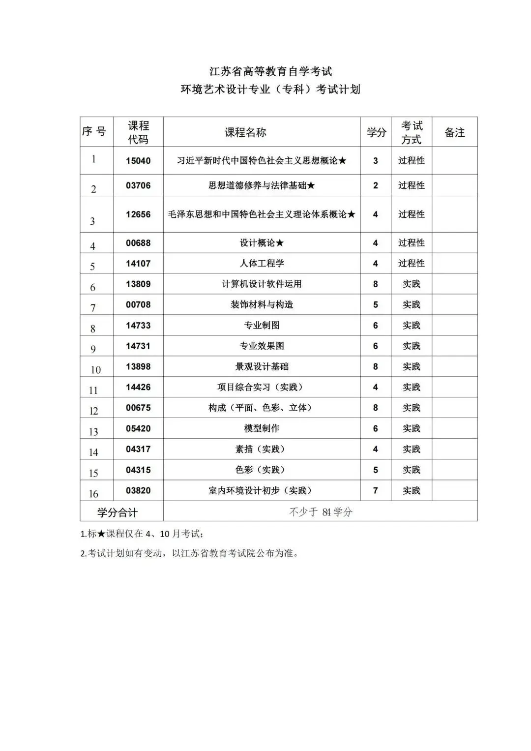 按照教学计划,考试课程门数一般不少于16门。考试由江苏省教育考试院统一组织实施,每年考试时间为1月、4月、7月和10月,国考课程考试时间仅在每年的4月和10月.