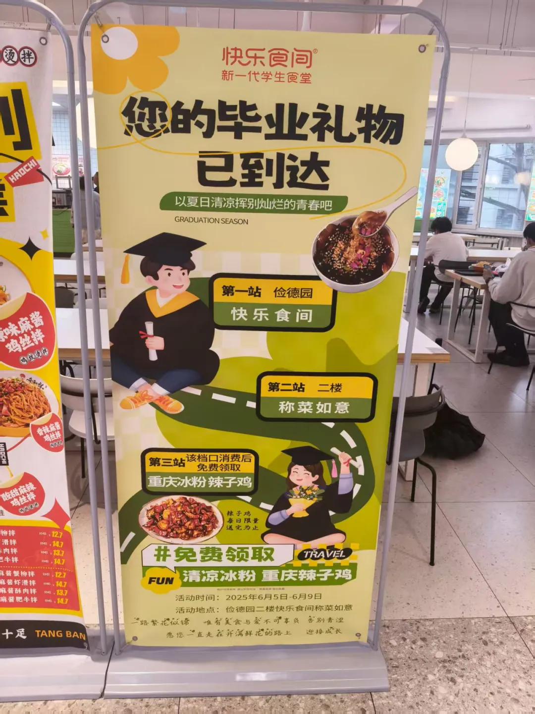校园重要节点,总有餐饮人的暖心守护。新生开学季,“迎新第一碗面”暖胃暖心,5:30提前开餐、临时早餐车、多元支付通道,用细致服务迎接9000余名新生;军训期间,免费西瓜、拉练物资配送,全程护航学子成长。毕业季,8000份“上车饺子”、特价菜品、免费冰粉,用美食定格青春记忆。运动会、校园马拉松等活动中,志愿者服务队的姜糖水、热豆浆,更是传递着浓浓的校园温情。