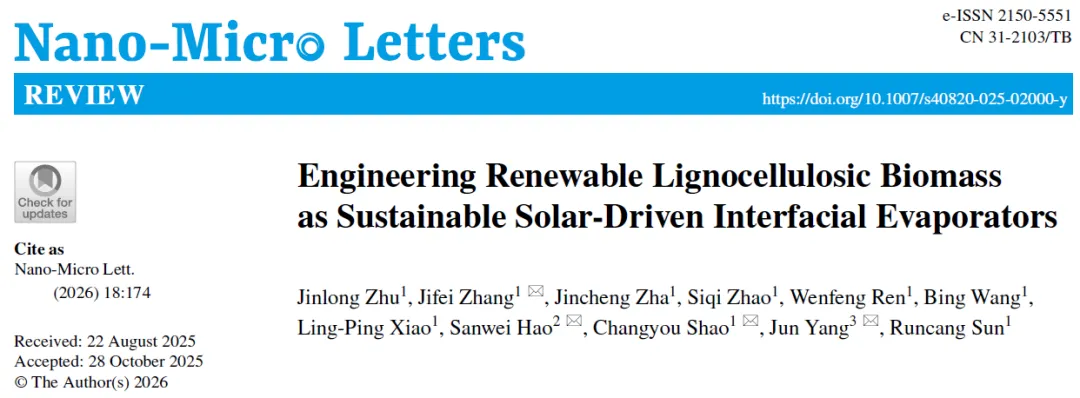 大连工业/山东理工/北京林业 Nano-Micro Letters重要综述 | 利用木质纤维素生物质构建可持续太阳能驱动界面蒸发器