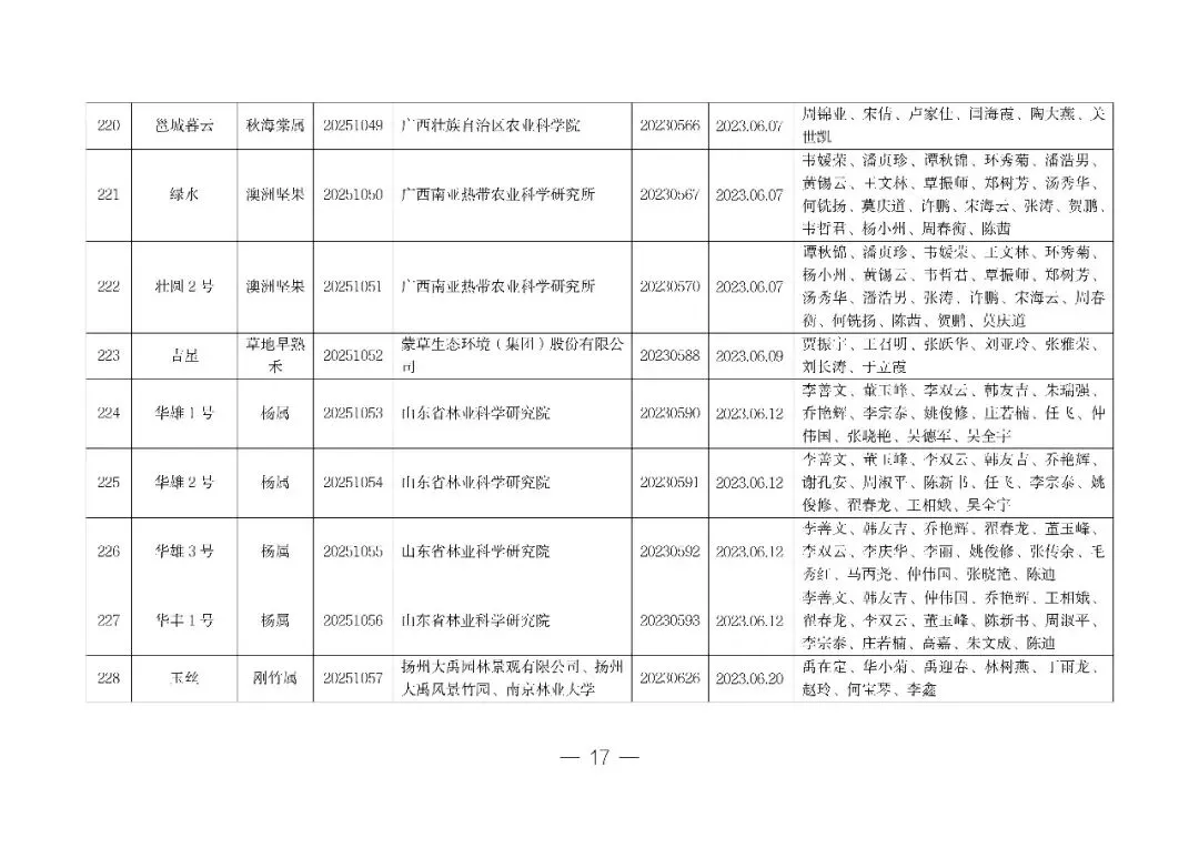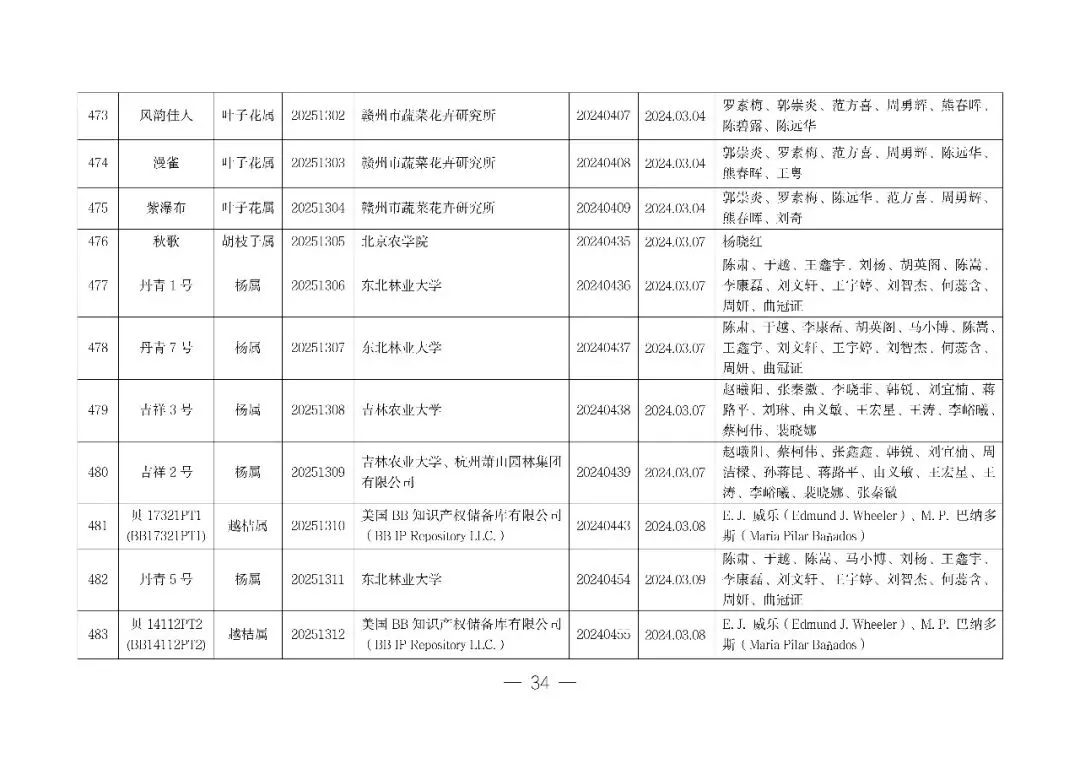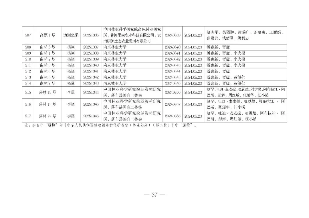 根据《中华人民共和国种子法》《中华人民共和国植物新品种保护条例》《中华人民共和国植物新品种保护条例实施细则(林业部分)》,经国家林业和草原局植物新品种保护办公室审查,“磐米榧”等517项植物新品种权申请符合授权条件,现决定授予植物新品种权,并颁发《植物新品种权证书》。
