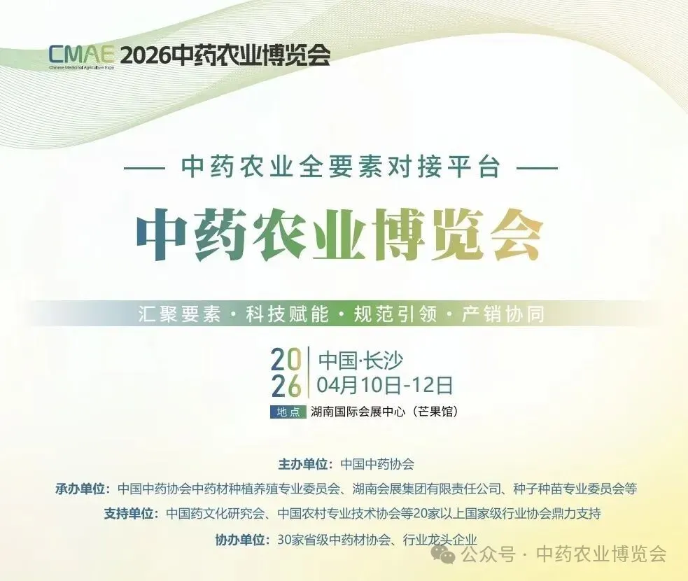 【CMAE 2026】首届中药农业博览会暨首届中药农业产业大会将于2026年4月10日—12日在长沙举办