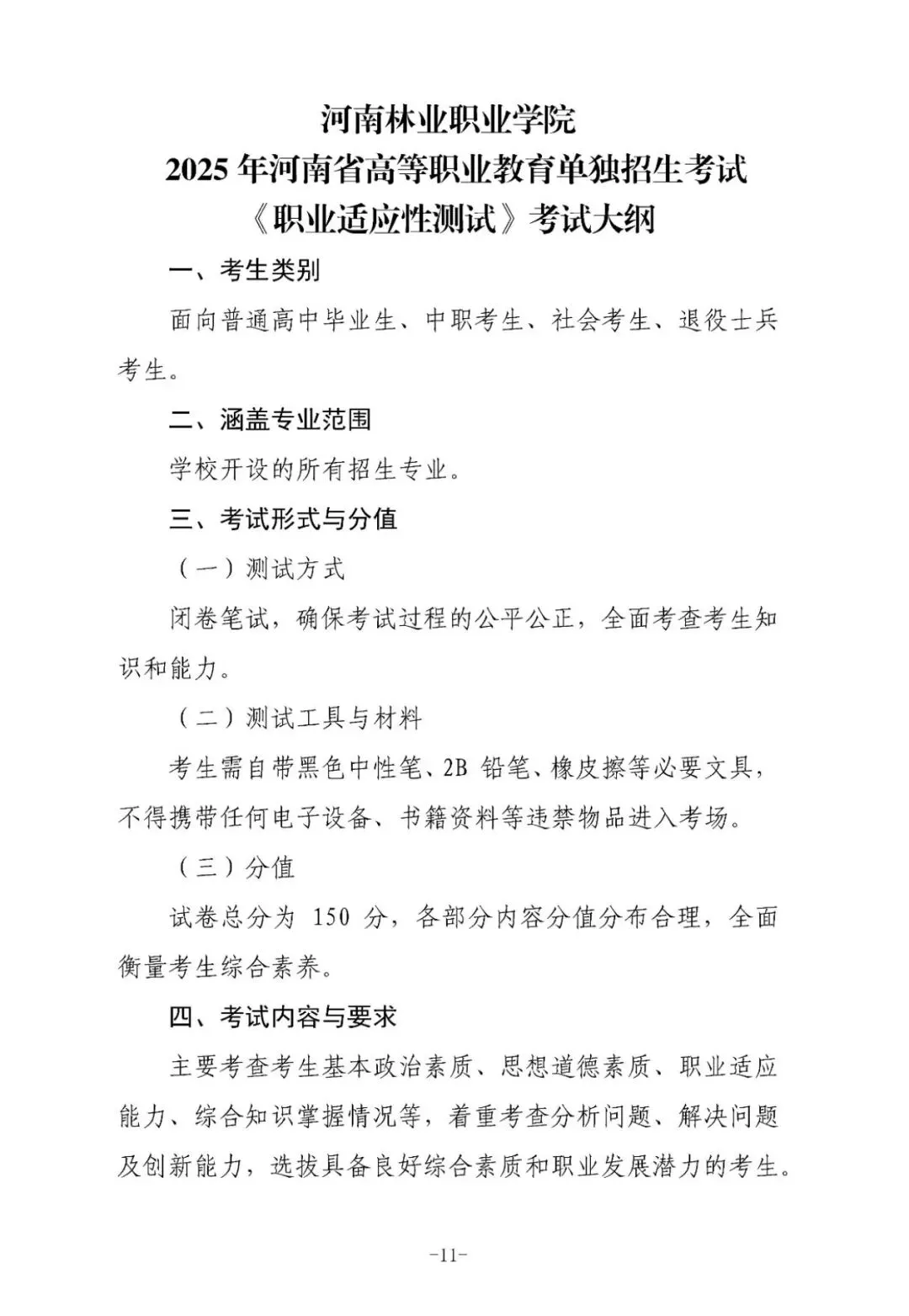 >招考试大纲—河南林业职业学院单