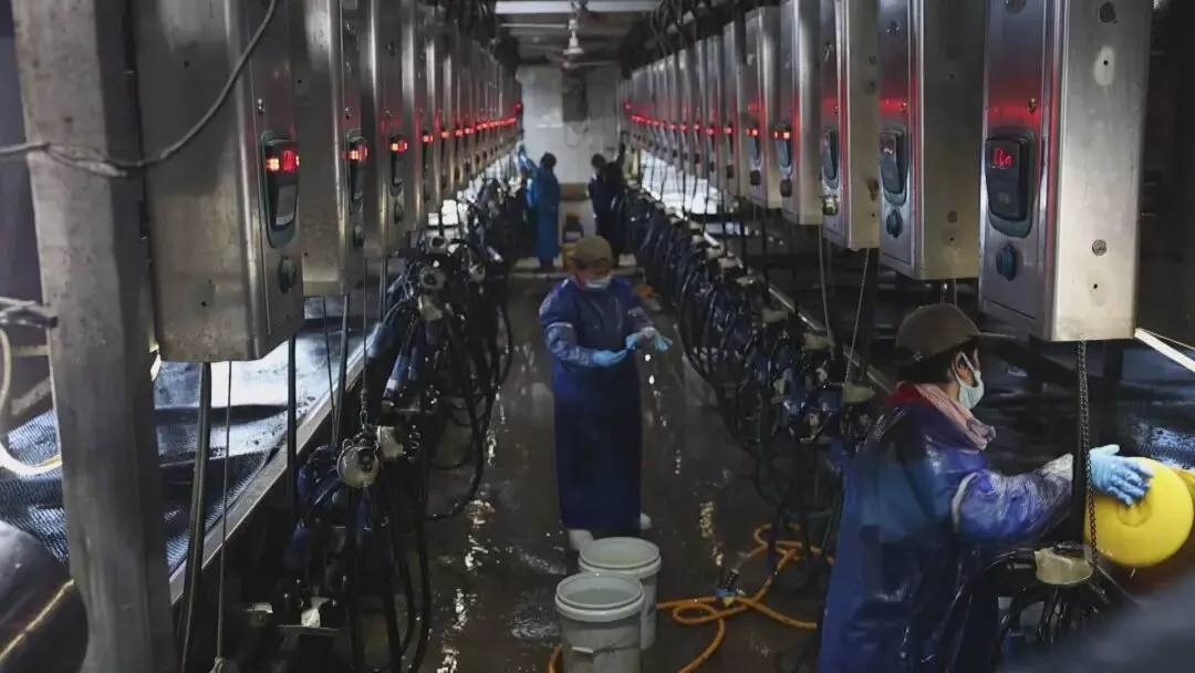 科技,是产业升级的核心驱动力。华丰镇以科技创新引领畜牧产业高质量发展,推动传统养殖向智慧养殖转型。华鑫奶牛养殖场引入以色列SCR智能挤奶系统和监测项圈,能实时汇聚奶牛进食、反刍、健康状况、产奶量等关键数据;精准饲喂系统按需配比营养,牧场管理软件自动生成牛系谱、推送发情配种窗口期,自动温控系统精准调节棚舍温湿度,科技元素贯穿养殖全链条。