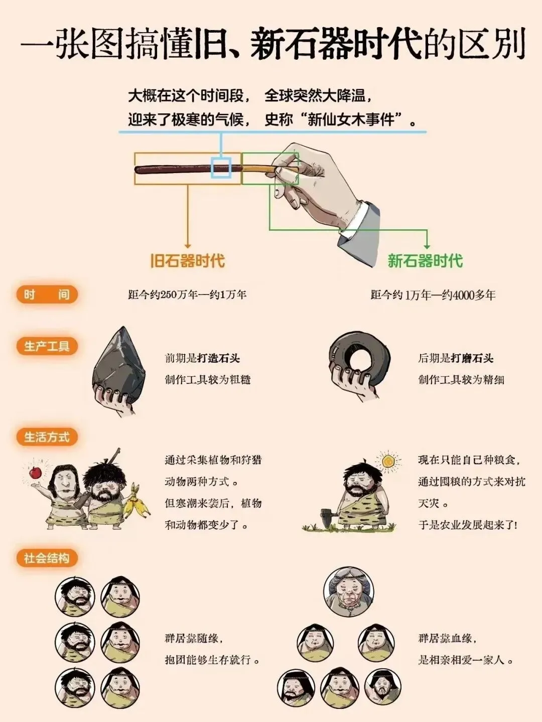 其实除了以上视角外,还有极寒天气,史称“新仙女木事件”,促进了新旧石器时代的转型。