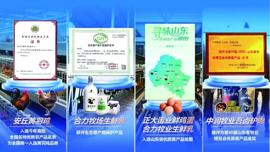 2025年前三季度全市肉蛋奶总产量16.9万吨,畜牧产值21.07亿元、增速6.5%,居潍坊第3位。全年肉蛋奶总产量22.8万吨,畜牧产值32亿元、同比增速6.6%以上。新建、改建规模养殖项目26个,实际投资2.35亿元,发展后劲持续增强,其中,欧力菲德二期肉牛养殖项目建成运营,新增肉牛存栏1000头;中健怡美公司羊驼扩繁至近300只,成为全省最大的羊驼繁育基地。坚持产量质量兼顾并举,持续叫响安丘畜牧品牌,先后争获省级以上品牌荣誉5个,其中,安丘黄羽鸡入选全国名特优新农产品名录、为全国唯一入选黄羽鸡品类,合力牧场生鲜乳获评生态原产地保护产品,正大蛋业鲜鸡蛋、合力牧业生鲜乳入选省优质畜产品地图,中润牧业吾卤驴肉获评山东畜牧业博览会优质畜产品金奖。