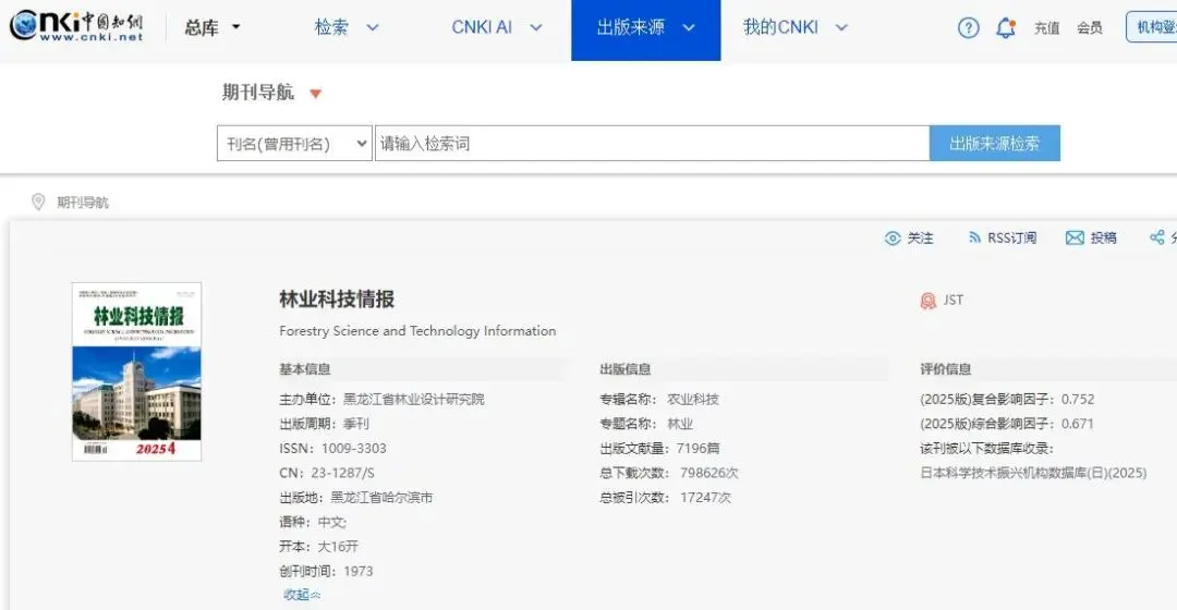 答:《林业科技情报》是知网、万方、维普收录的学术性期刊。
