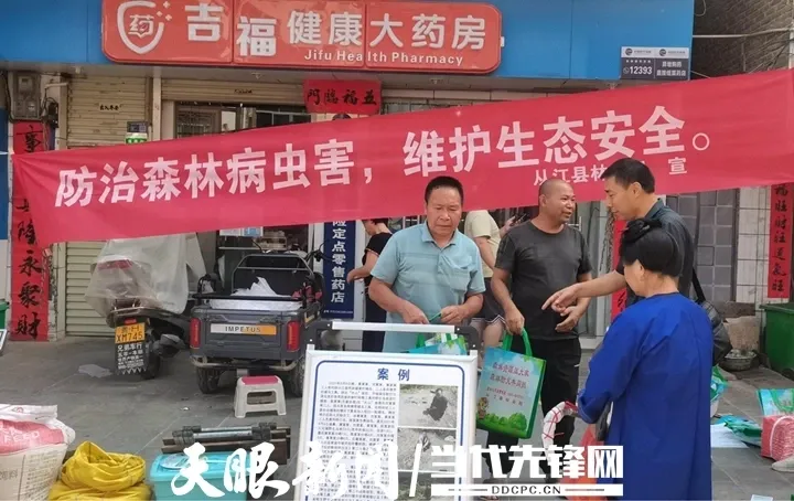 从江县拓宽“线上 + 线下” 宣传渠道,落实县乡村三级宣传网络,普及森林病虫害防治知识,跟踪群众线索核查及咨询回应。 从江县林业局 供图