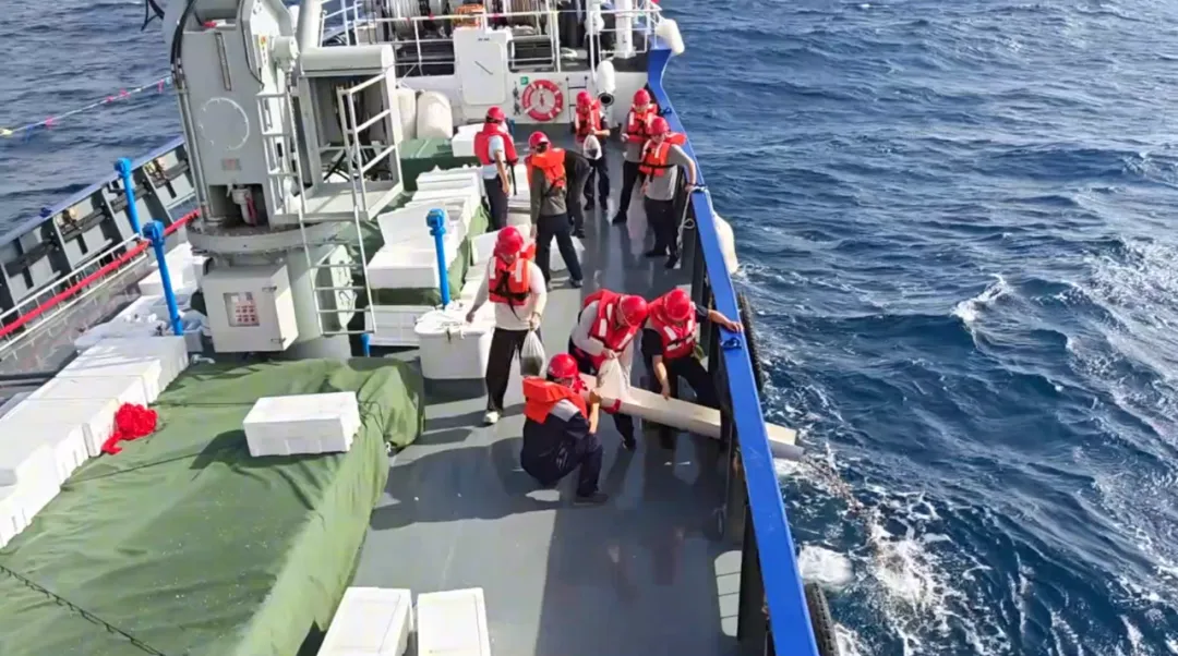 据了解,渔船从清澜港码头出发,抵达永兴岛后,工作人员立即对运输的海参苗进行抽样检查,通过随机抽取苗袋,仔细测量海参苗的长度、观察其健康状况,并抽样称重推算出本次运输及计划放流的海参苗总数约为49万尾。在确认苗种状态良好、符合放流标准后,该船在宣德群岛海域开展增殖放流工作。