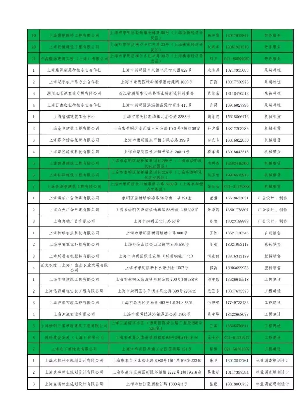 2、准入新增苗木销售类2家,劳务服务类3家,机械租赁类3家,工程建设类3家。