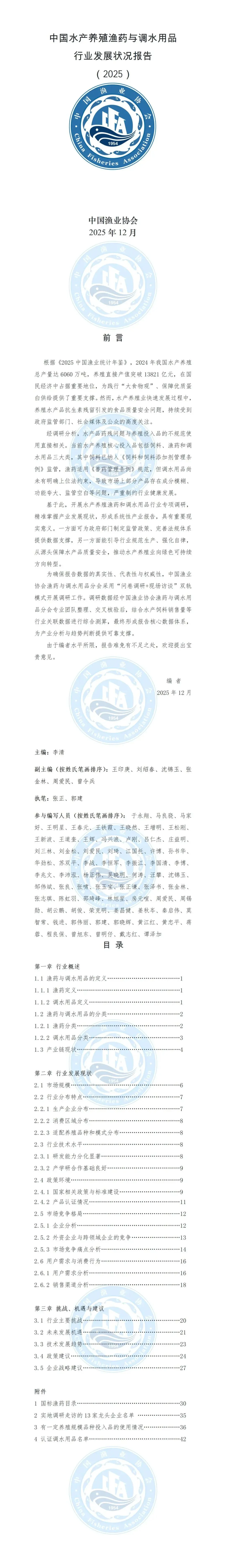 中国渔业协会权威发布!《中国水产养殖渔药与调水用品行业发展状况报告(2025)》重磅出炉