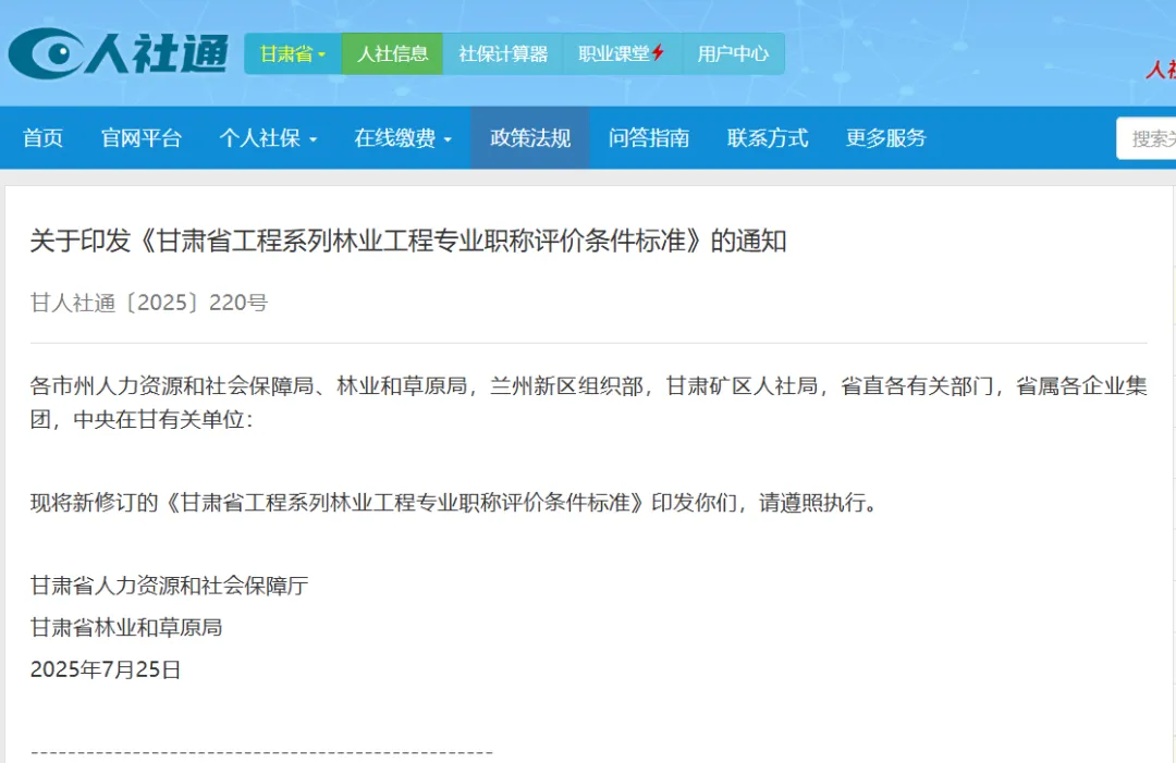 甘肃省人力资源和社会保障厅 发布:2025-07-25