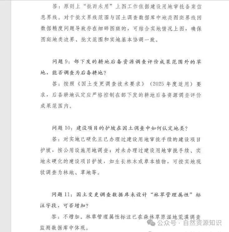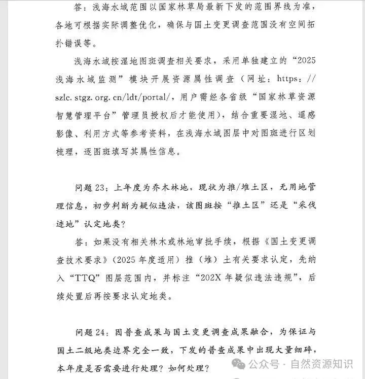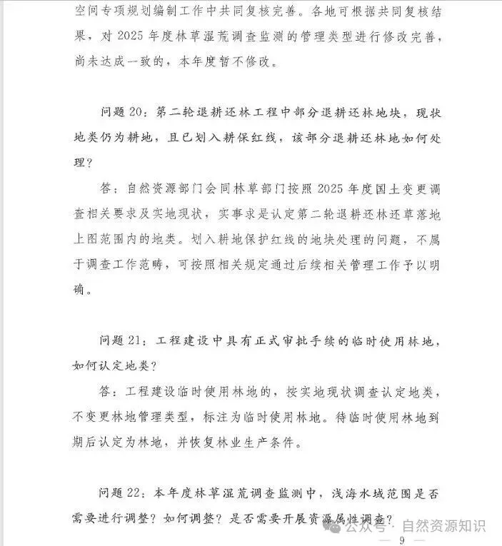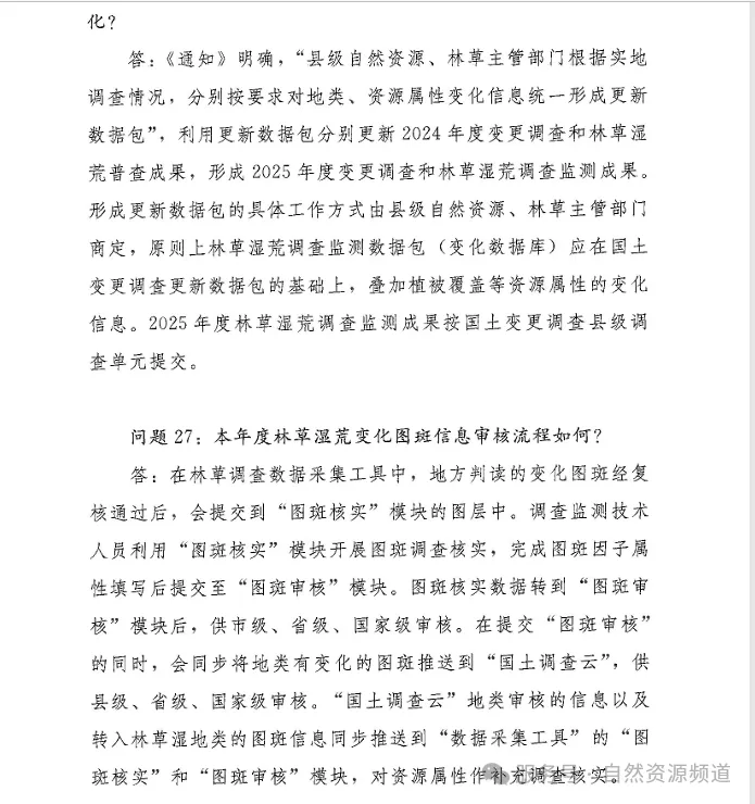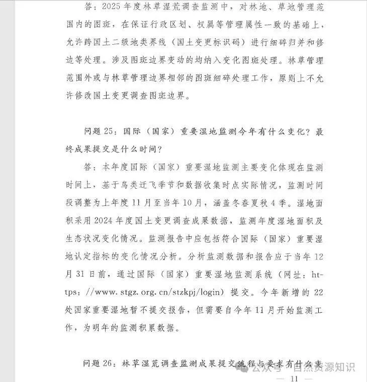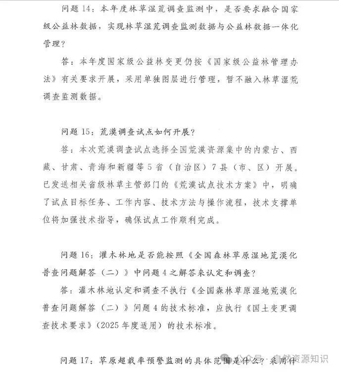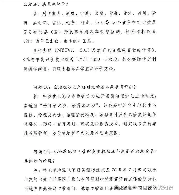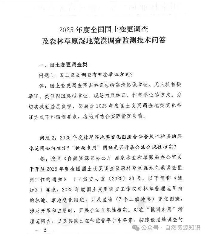 现将《2025年度全国国土变更调查及森林草原湿地荒漠调查监测技术问答》印发你们,请在2025年度全国国土变更调查及森林草原湿地荒漠调查监测中参考使用。