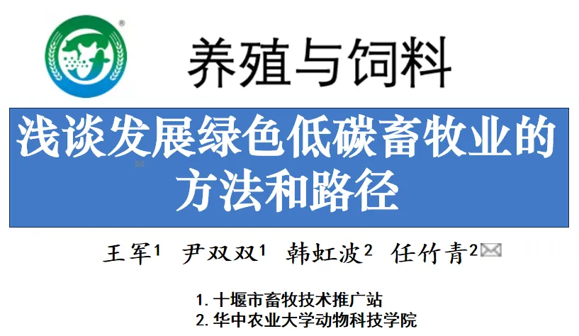 王军,尹双双,韩虹波等.浅谈发展绿色低碳畜牧业的方法和路径[J].养殖与饲料,2025,24(5):115-118.