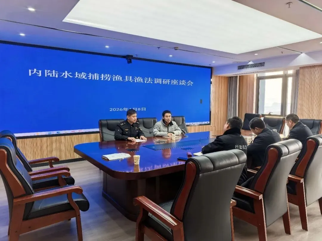 1月8日,受省渔业执法监督中心委托,省淡水水产研究所来我市开展内陆水域捕捞渔具渔法调研座谈,市农业综合行政执法监督局和部分县(市、区)从事内陆渔政执法的具体负责同志参加座谈交流。