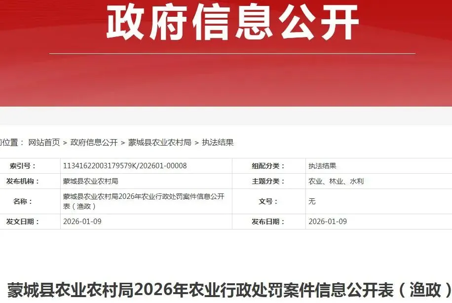 >蒙城:使用破坏渔业资源方法进行捕捞案处罚结果公示
