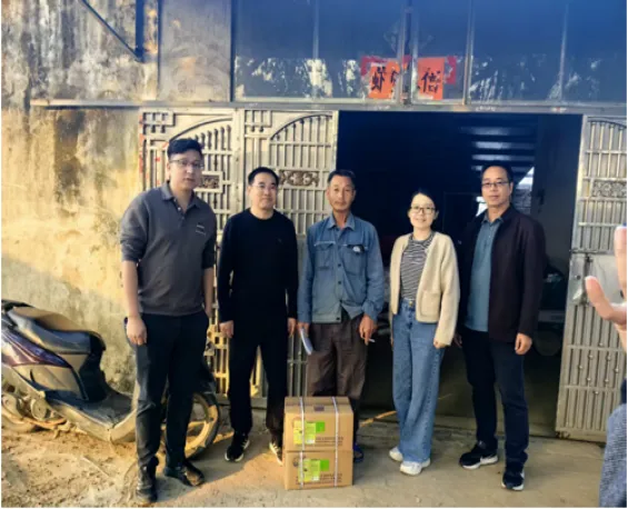 随后,团队深入护岭村青蟹养殖户的塘头,与养殖户进行面对面交流,针对青蟹养殖中常见的水质管理、常见病害识别与处理等技术难题,三位老师进行了详细解答与现场示范。团队还向养殖户赠送了自行编制的《水产养殖病害防治手册》及一批安全高效的动保产品,将实用技术送到生产一线,切实帮助养殖户提升冬季养殖管理水平和风险应对能力。