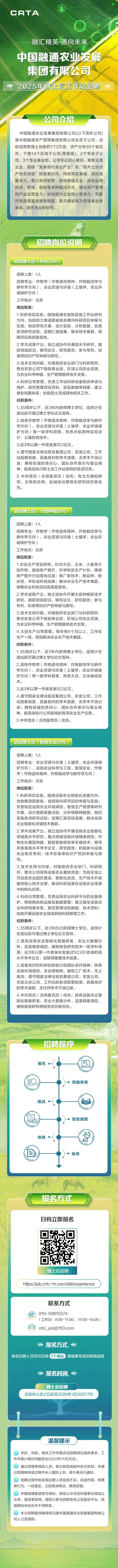 >中国融通农业发展集团有限公司2025年博士后工作站招聘
