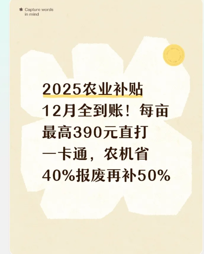✅ "2025年农业补贴砍半,小麦补贴直接取消!"