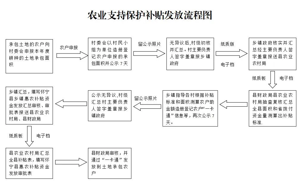 申报:每年3-4月(粮食类)或6-7月(农机类),带身份证、土地确权证到村委会填申请表,也可以在"国家政务服务平台"APP线上申报。