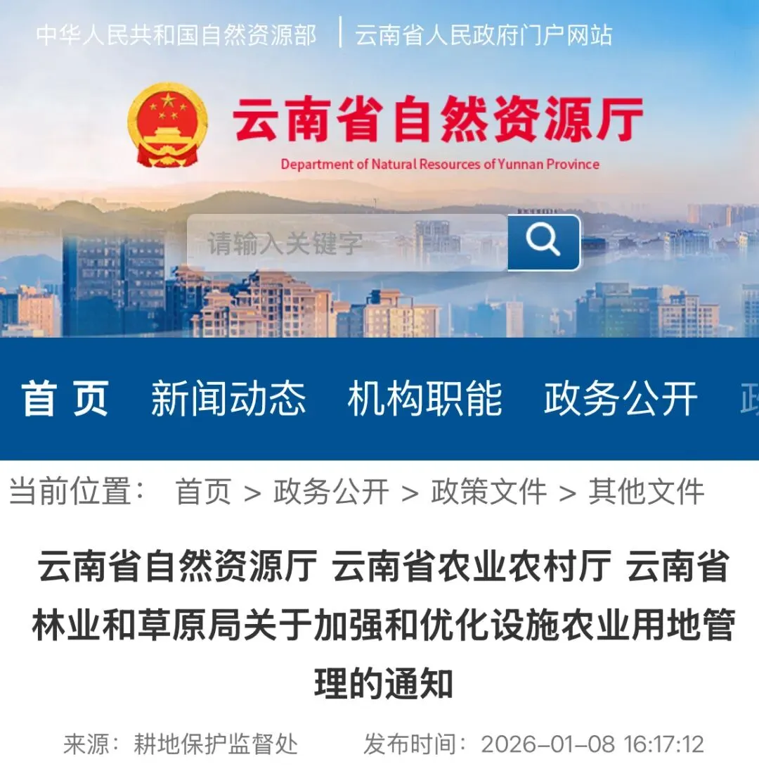 为支持现代设施农业发展,做好设施农业用地保障,规范设施农业用地管理,支撑全省高原特色农业高质量发展,按照国家关于耕地占补平衡制度改革、国土变更调查地类认定有关调整以及设施农业用地管理有关要求,结合云南省实际,现就进一步优化设施农业用地管理有关安排通知如下: