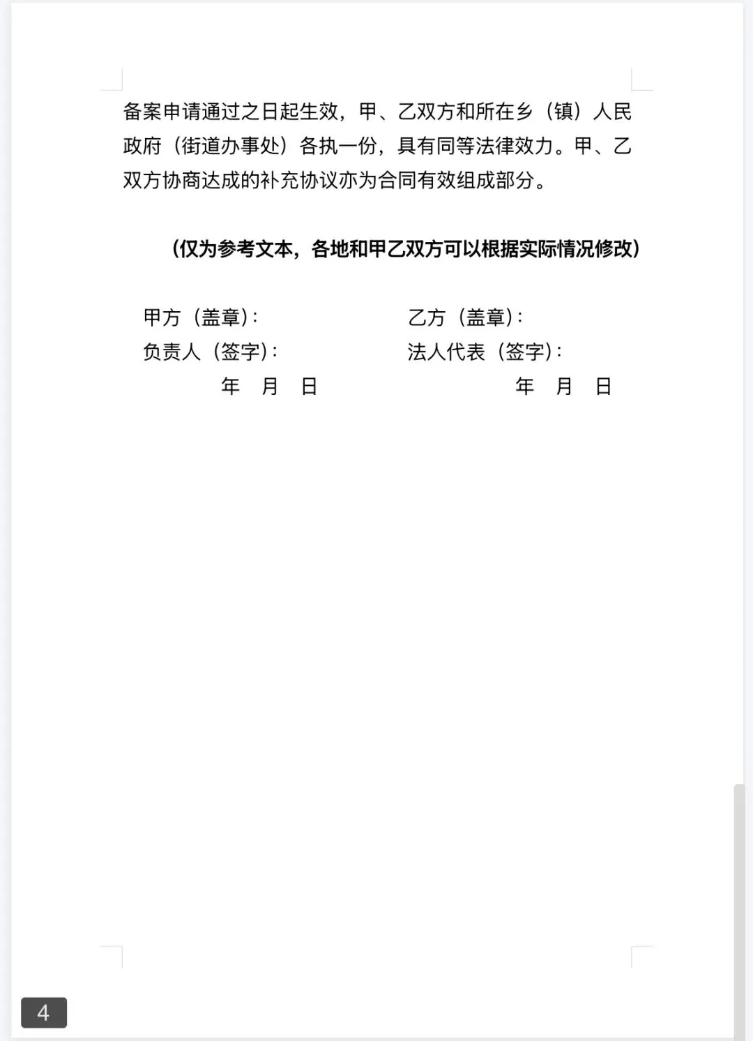 (七)提出申请。设施农业用地实行乡镇备案管理。使用农村集体土地从事设施农业建设的,经营者应与农村集体经济组织约定土地使用条件,签订土地使用协议(见附件2),涉及农村集体已发包给承包户的农村土地的,经营者应先行依法与承包户签订流转合同。土地使用协议签订后,设施农业经营者按程序向乡(镇)人民政府提出备案申请(见附件3)。