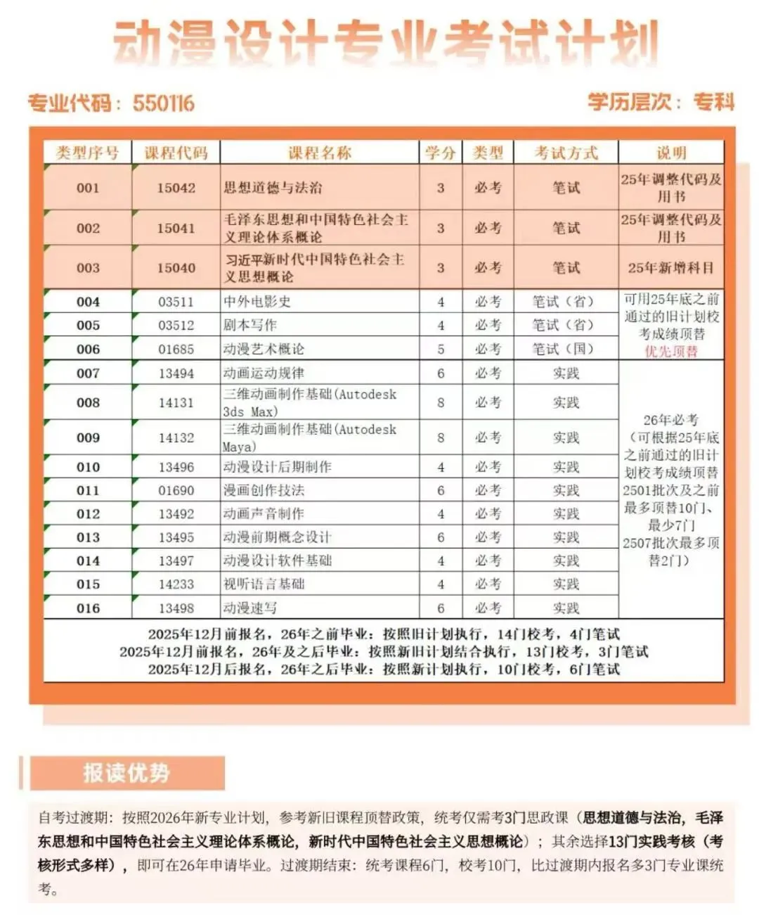 👉2025年12月申请毕业,统考科目4科现在过渡期报名,新旧计划顶替后2026年申请毕业,笔试统考只需3科(思政课)2026年就以新计划6科进行考试。