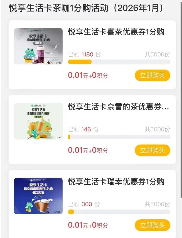 长期有效,建设银行信用卡活动,两大行大量微信立减金、优惠券、抽奖!上百元毛
